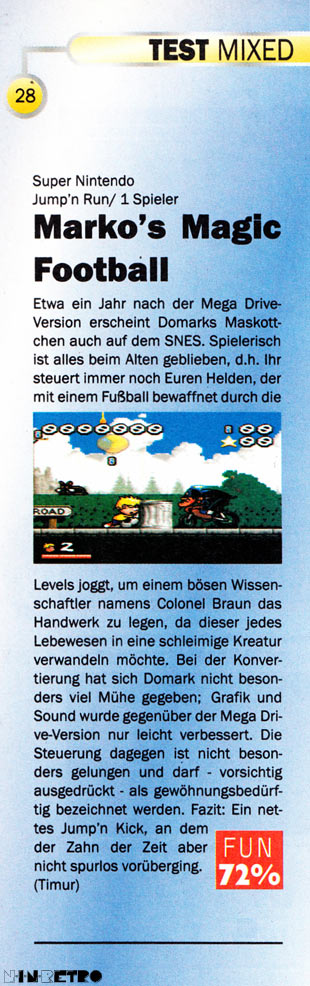 Welcome to the world of Marko, a world of cartoon madness. Experience the addictive blend of football skills and platform action that combine to make a superb gameplaying experience. Add the most incredible graphics ever to be seen and the result is Marko's Magic Football. It's just like playing a cartoon.