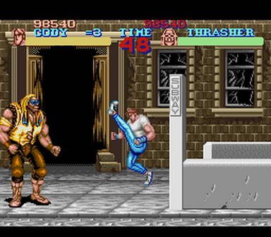 Now you're Haggar or Cody, each with his own fighting style. Demolish gangland henchmen, samurai swordsmen and musclebound crime bosses in a fist-to-nose frenzy!