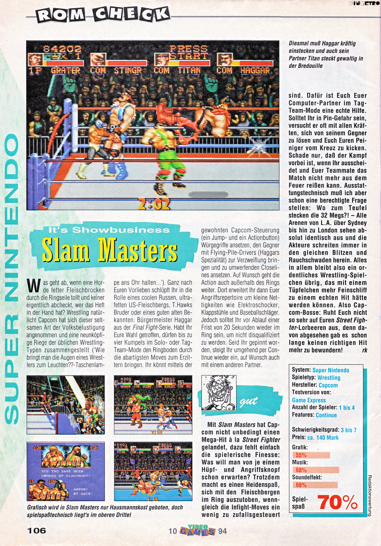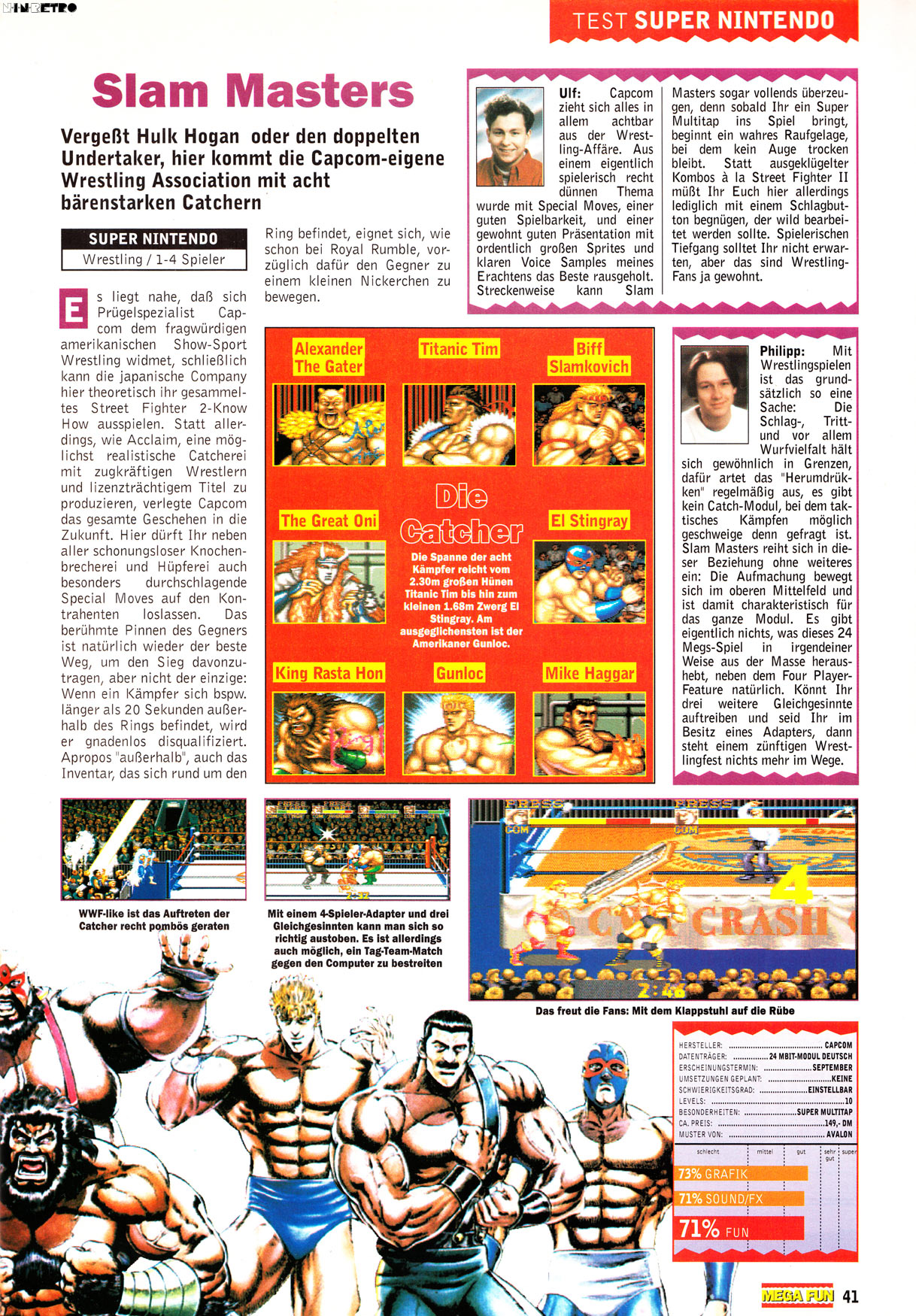 Features 10 unique wrestlers each with their own special attacks like Haggar's Spinning Piledriver and Rasta's Dread Lock Drop.