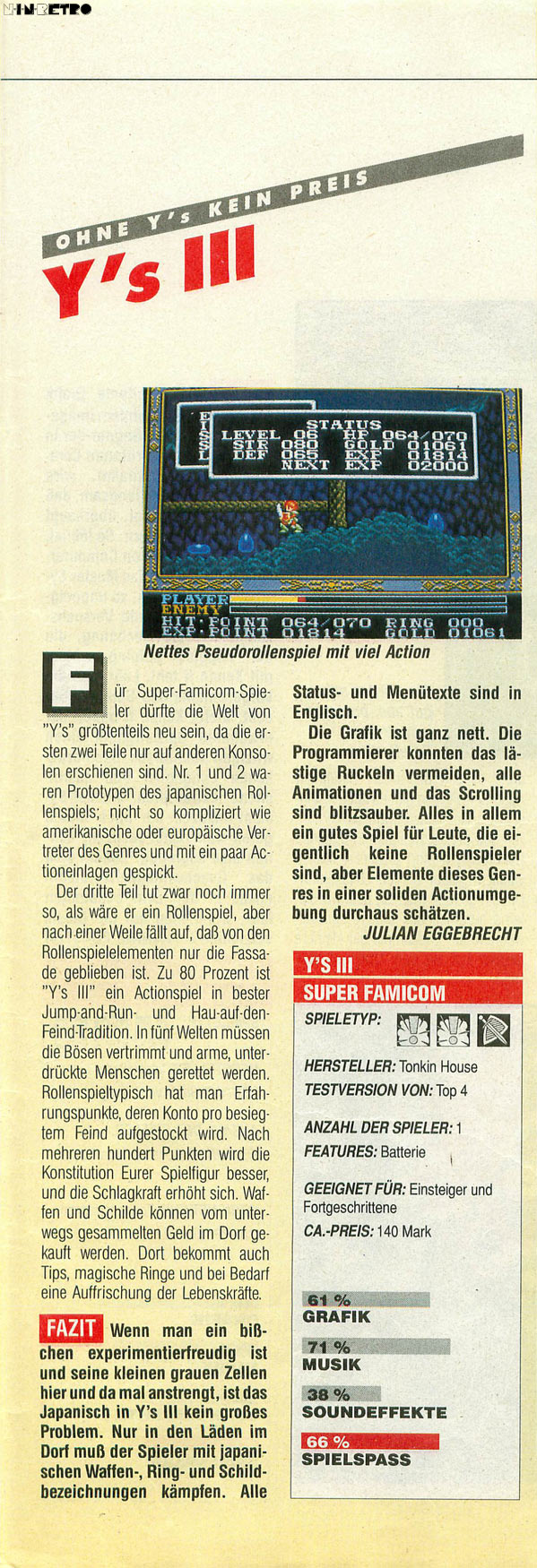 A LEGACY OF EVIL HAS ARISEN IN THE LAND OF Y's