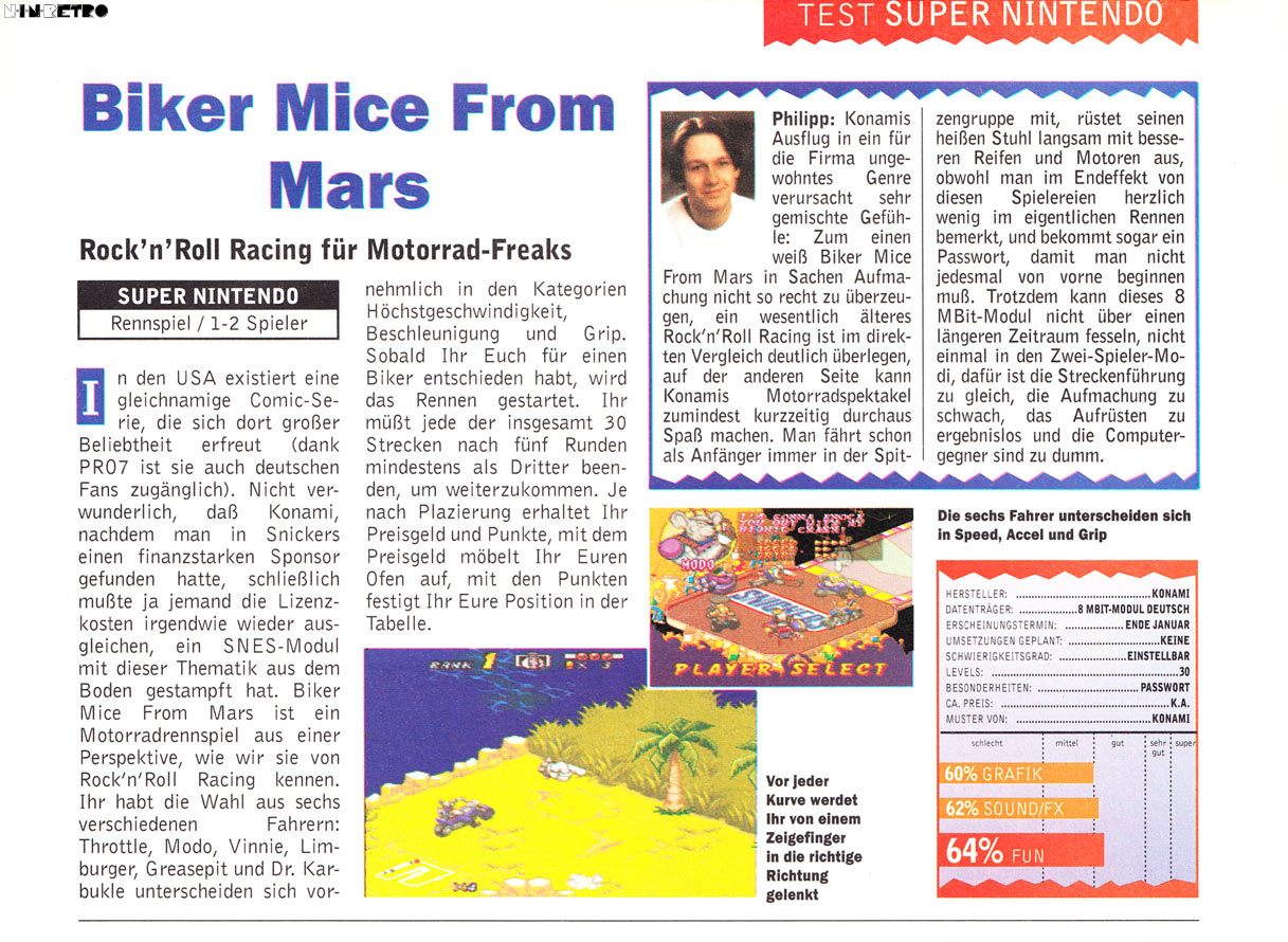 Biker Mice kommt weder von der Steuerung noch vom Streckenverlauf (vom Sound ganz zu schweigen) an sein großes Vorbild heran.