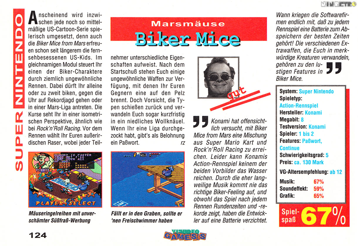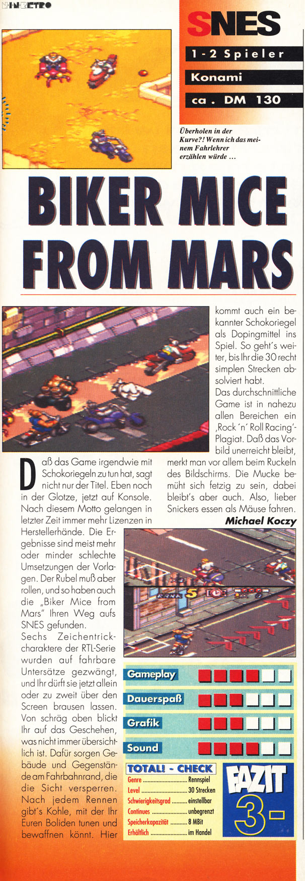 Seh ich genauso. Die Musik erinnert mich sehr an die Turtles-Spiele, evtl. waren da die gleichen Leute am Werk. Die penetrante Snickers-Werbung gibts übrigens nur in der PAL-Version.