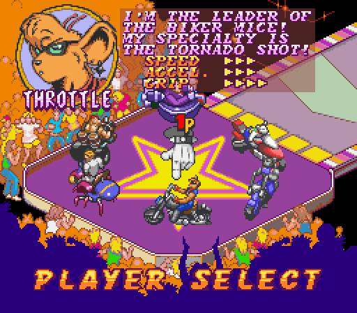 Take the role of one of the heroic Biker Mice - or go the nasty route and pick the big cheese Limburger, the overlubed Greasepit or the diabolical Dr. Karbunkle. They all have different abilities, speeds, and - oh yeah - WEAPONS! The streets aren't safe for long...