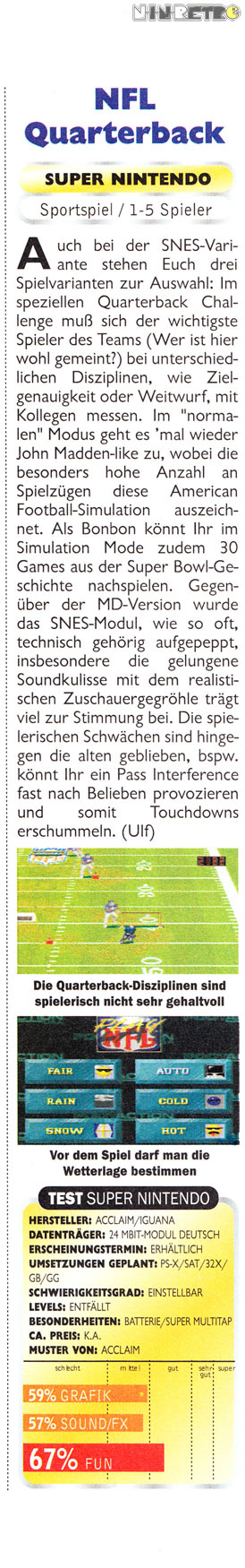 NFL Quarterback Club '96 (Super NES)