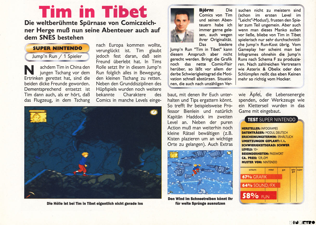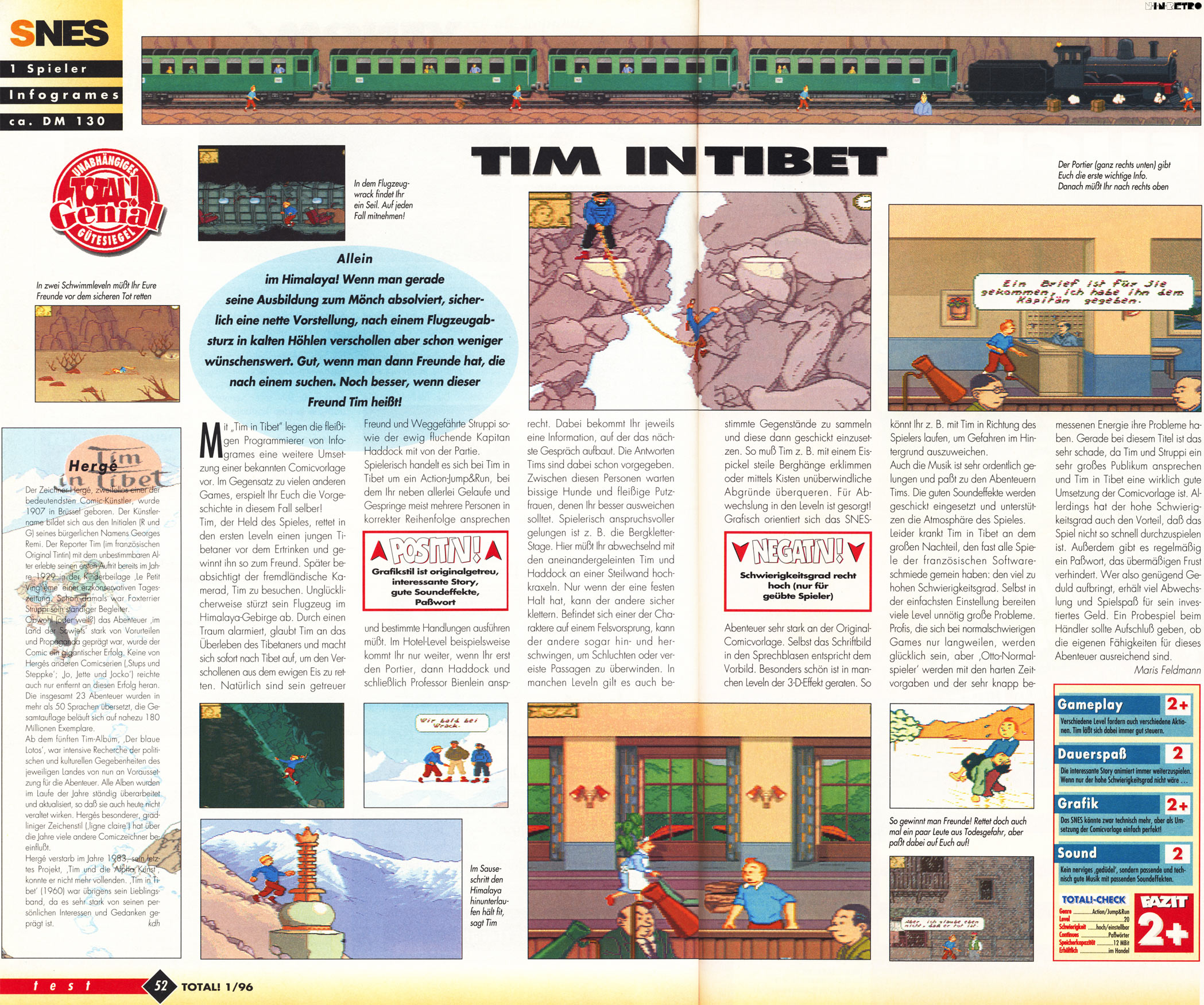 Auch wenn mir die 16-Bit Versionen nicht so gut gefallen wie die Handheld-Module, so zeigt Tim in Tibet doch, wie ein Spiel völlig ohne Gewalt auskommen kann und dabei trotzdem Spannung und Herausforderung bietet.