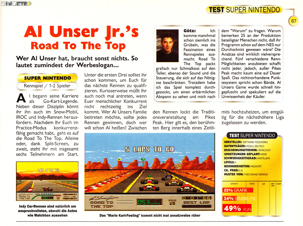 Zum Glück wurde dieses Spiel damals nicht mit Michael Schumacher oder so eingedeutscht, dann hätte man hier sehr viel mehr Leuten das Geld aus der Tasche ziehen und sie danach maßlos enttäuschen können..