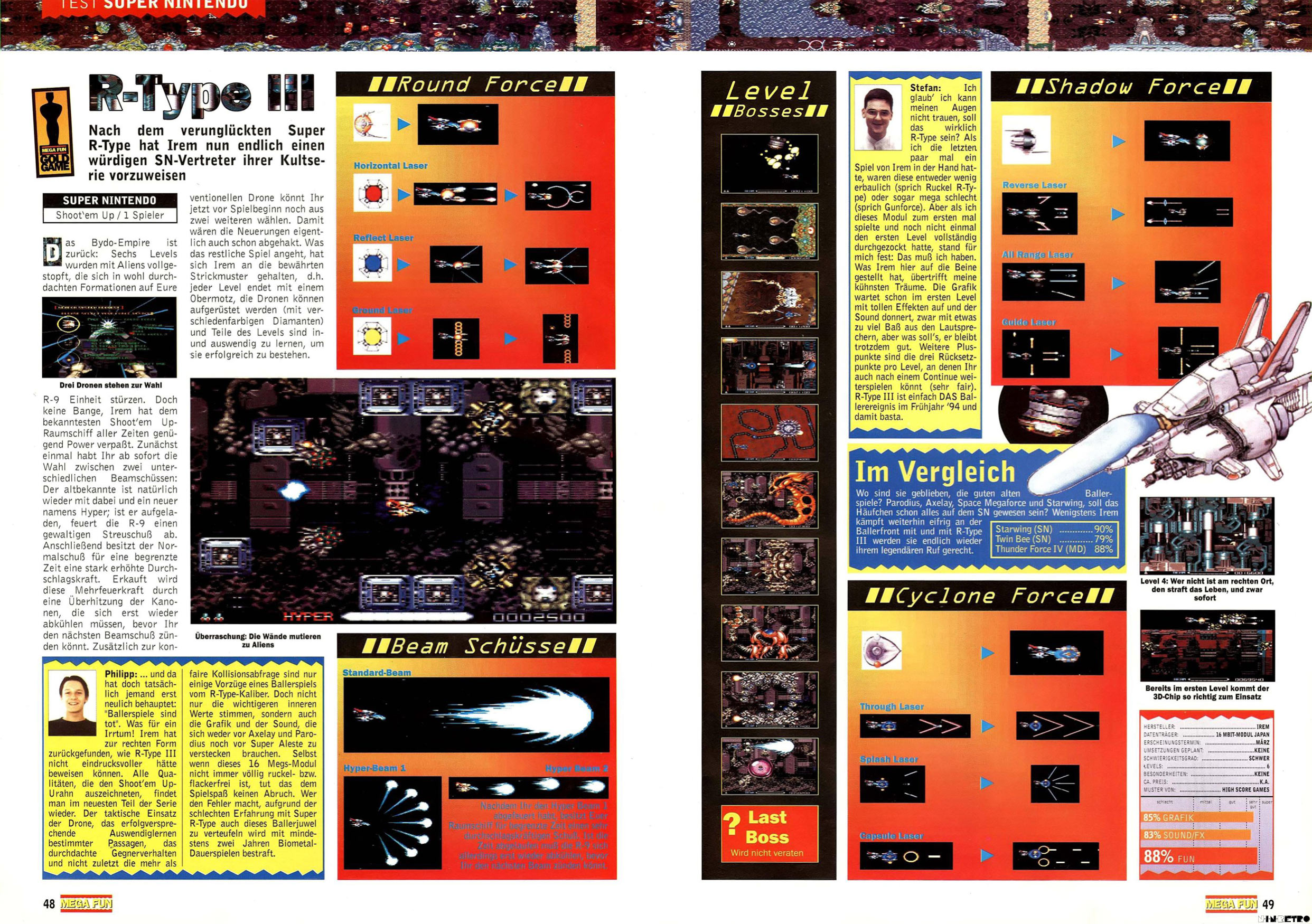 Das Genre der Space-Shooter (oder wie auch immer man es nennen mag) ist ja auf dem SNES allgemein nicht allzu üppig vertreten. R-Type III gefällt mir im Gegensatz zu Super R-Type sehr gut. R-Type III zählt mit Sicherheit auch mit zu den besten Genrevertretern auf dem SNES.