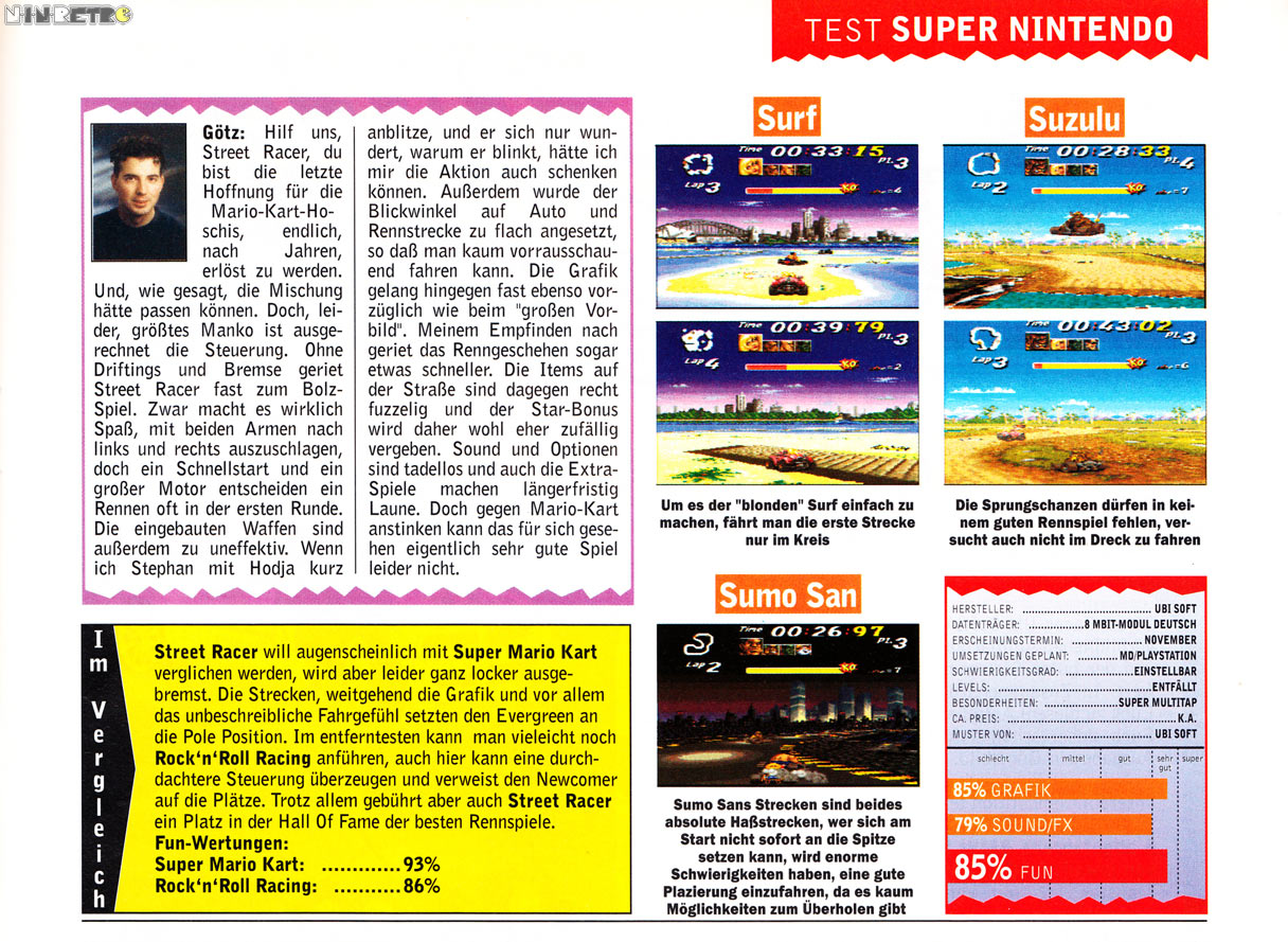 Alleine und zu zweit hat es mir immer großen Spaß bereitet, obwohl wenn man Mario Kart hatte brauchte man dieses Spiel nicht wirklich. Die Charaktere fand ich aber gelungen.