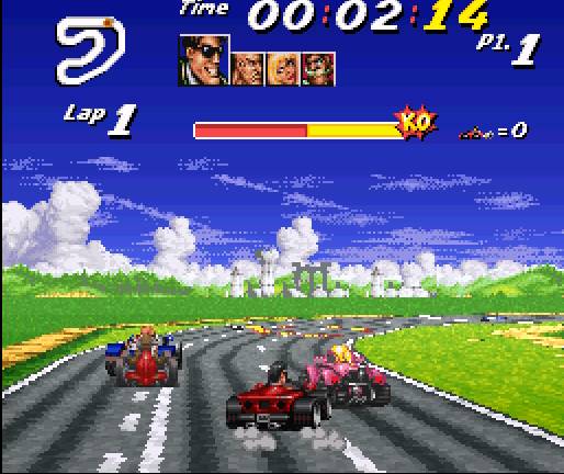 Im Gegensatz zu Nintendo hat Ubisoft den Fehler gemacht, zu detaillierte Untergründe zu pixeln. Für die flimmeranfällige Mode-7-Technik eignen sich eher einfach gehaltene Zeichnungen.