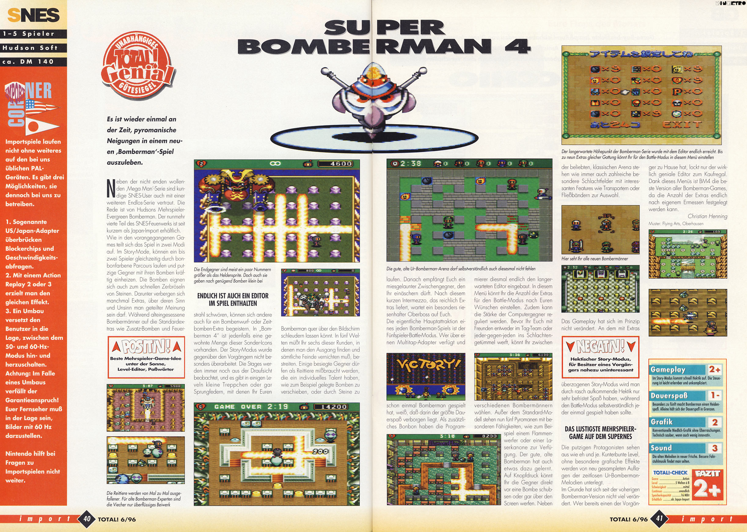 Das wohl beste Bomberman im Multiplayer-Bereich. Leider nie bei uns erschienen. Ich habe es via NTSC-Aufsatz gespielt und der Titel hier holt wirklich alles aus dem SNES raus.