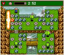 Ending a trilogy of Super Bomberman games, the story is that Bagular's brain escaped the explosion of his flying saucer and has summoned the Four Bomber Kings and Great Bomber to get revenge on Shiro and Kuro. Shiro and Kuro are sent hurtling back in time, along with some other Bombermen, to fight through different eras and ultimately stop Bagular.