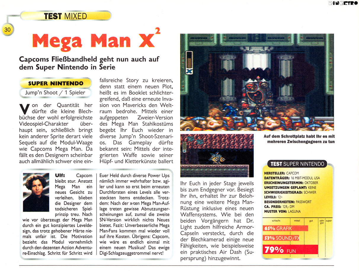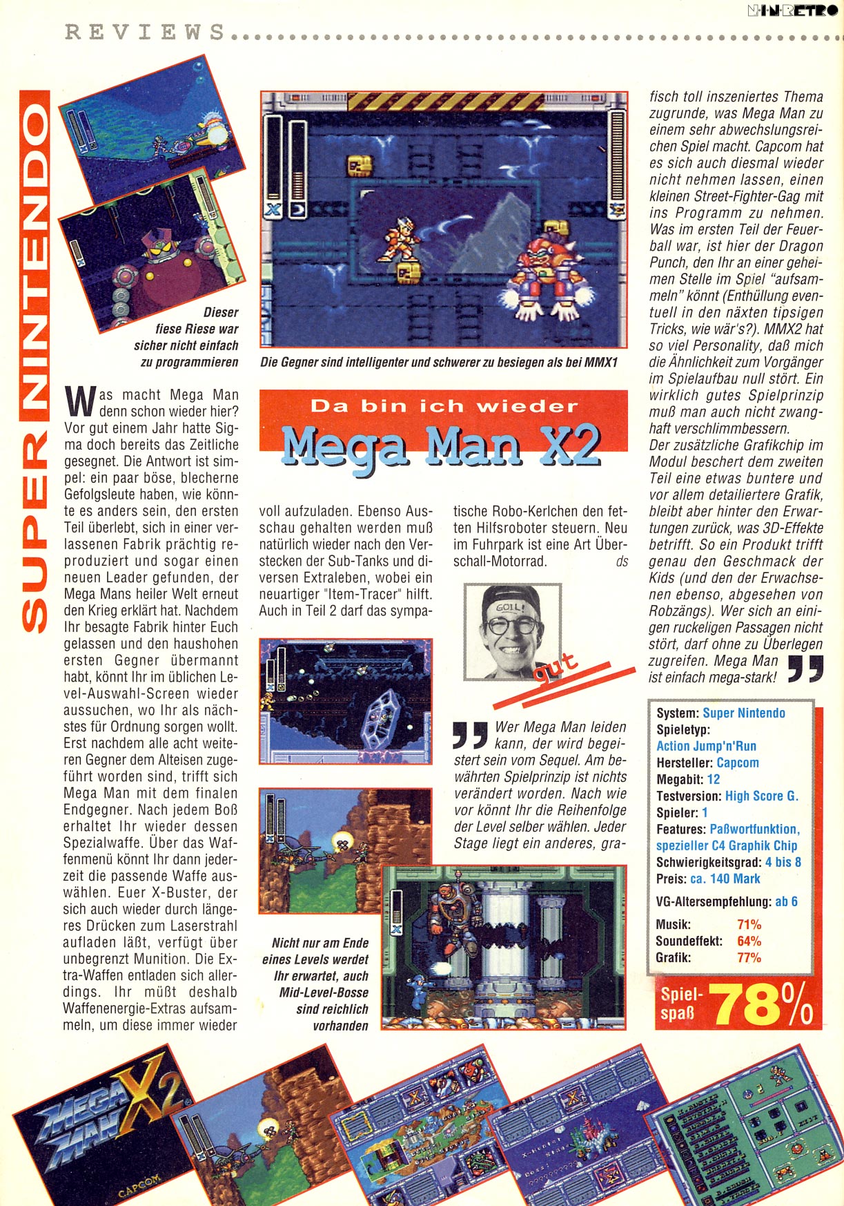 Wenn beim Einschalten der Konsole auf dem zweiten Controller den B-Knopf gedrückt hälst, kommst bei "Mega Man X2" und "Mega Man X3" in den Testmodus des Chips.