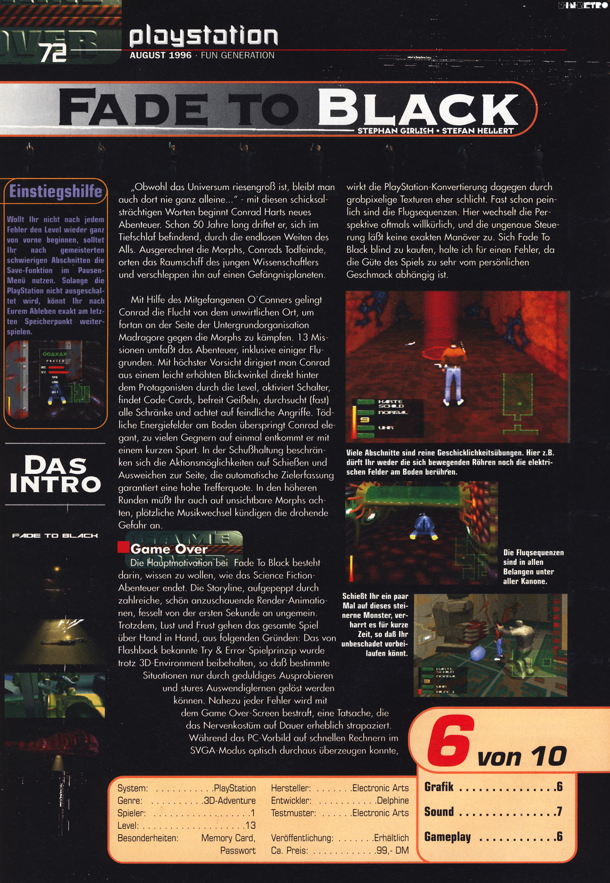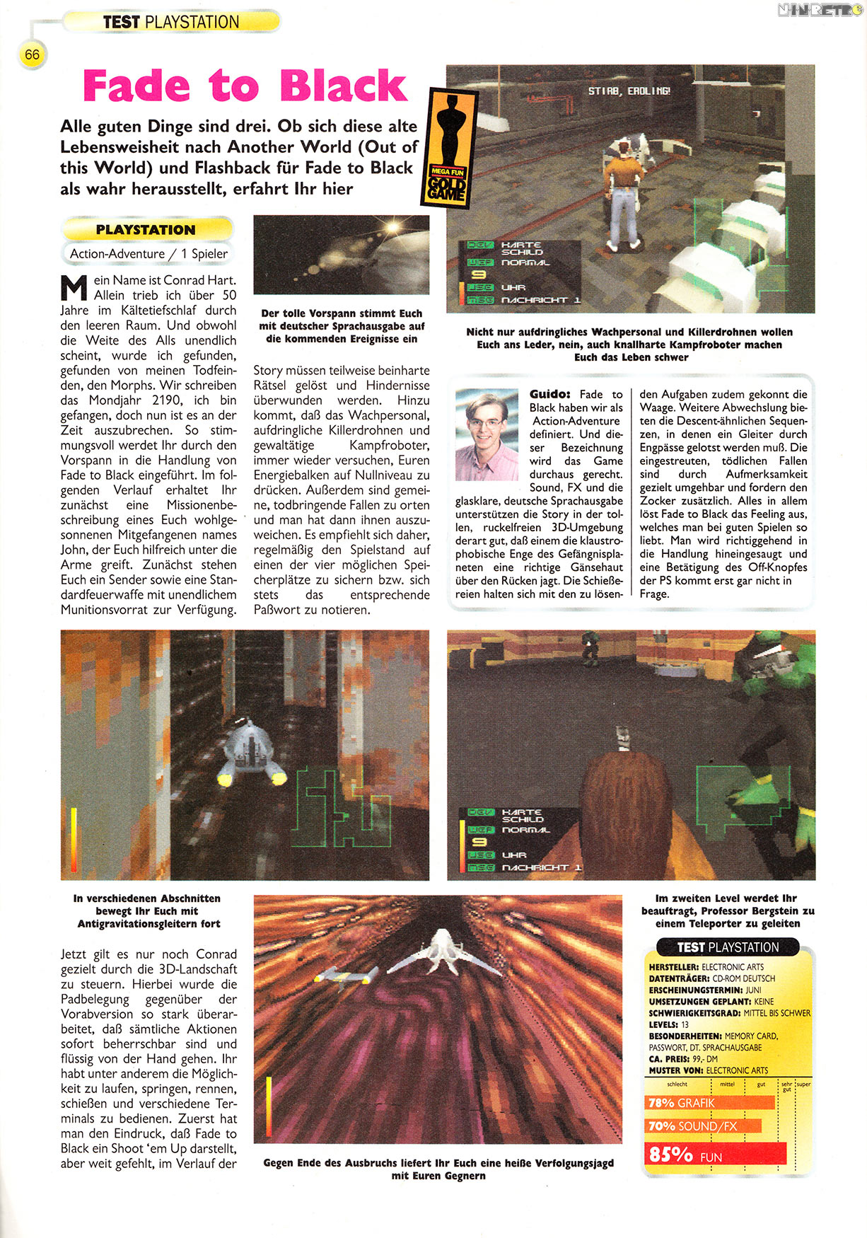 Wäre ich der Videogames-Redakteur gewesen, hätte es von mir klar ein "Hilfe" gegeben. Die Aussagen, die er stattdessen macht lassen vor allem auf ein gutes Verhältnis zur Entwicklerfirma schließen. Vielleicht wird Fade to Black mit sehr viel Übung besser, aber für was soll ich üben, wenn ich nach einer Viertelstunde irgendwie schon keinen Bock mehr auf das Spiel an sich habe?