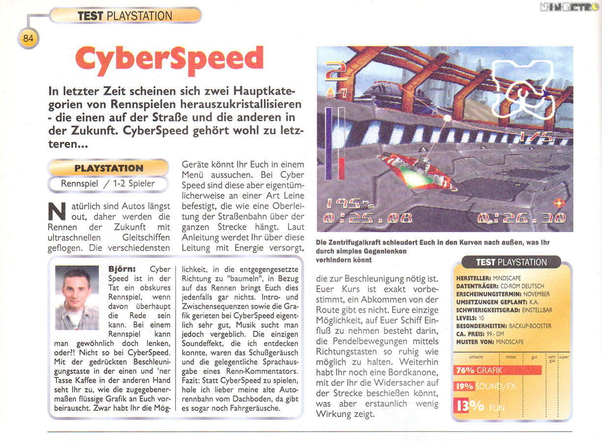Combining racing thrills, science fiction, and shoot-'em-up elements, CyberSpeed is a lightning - quick experience that takes you to the very edge of technology. Not to mention, your seat.