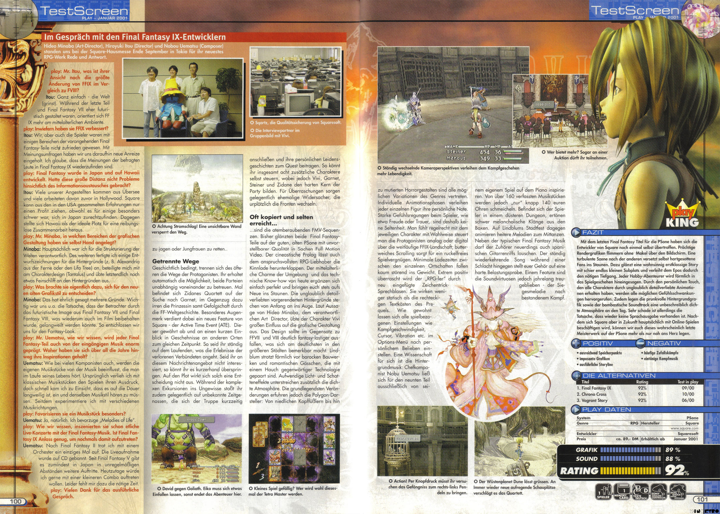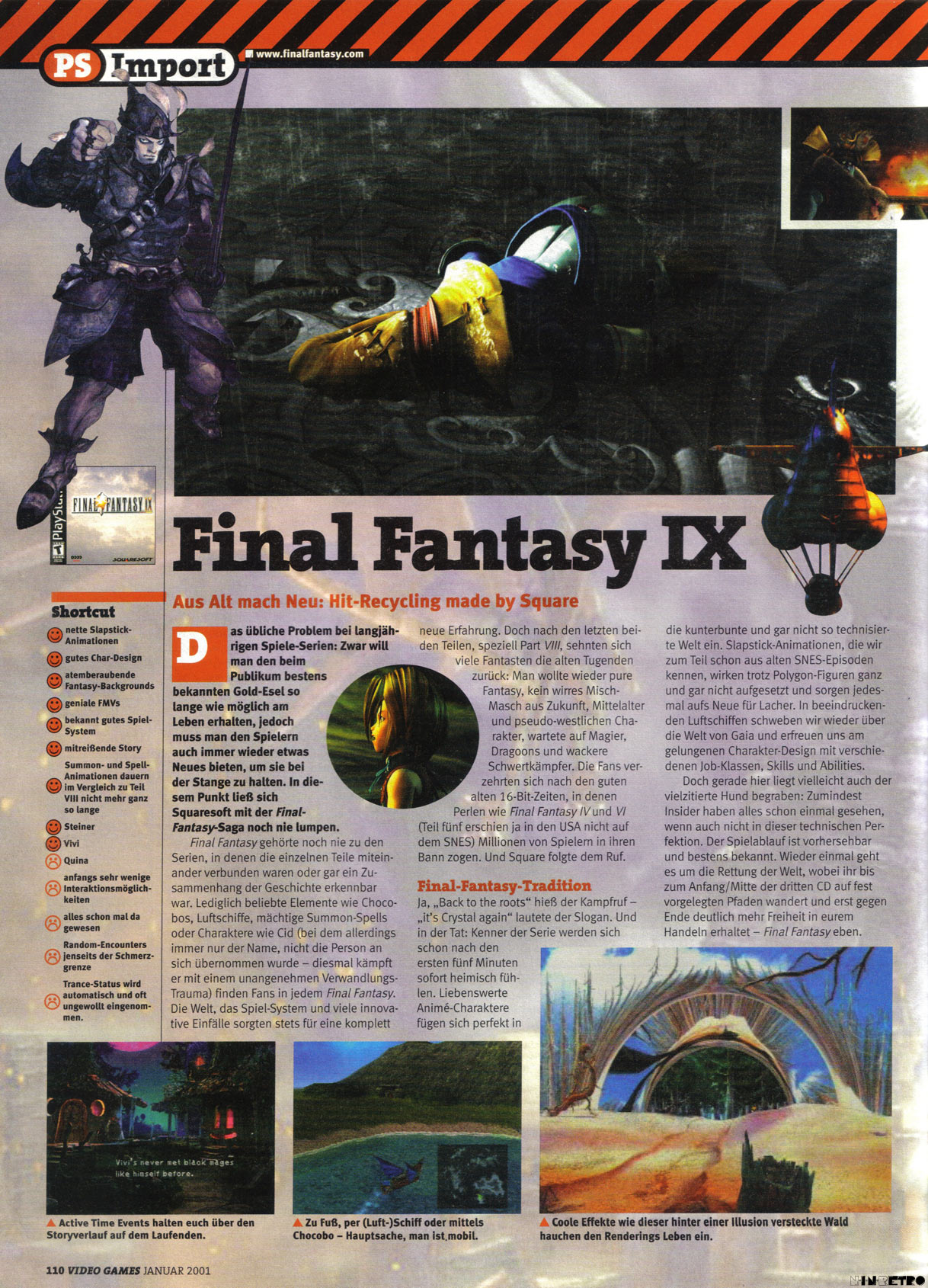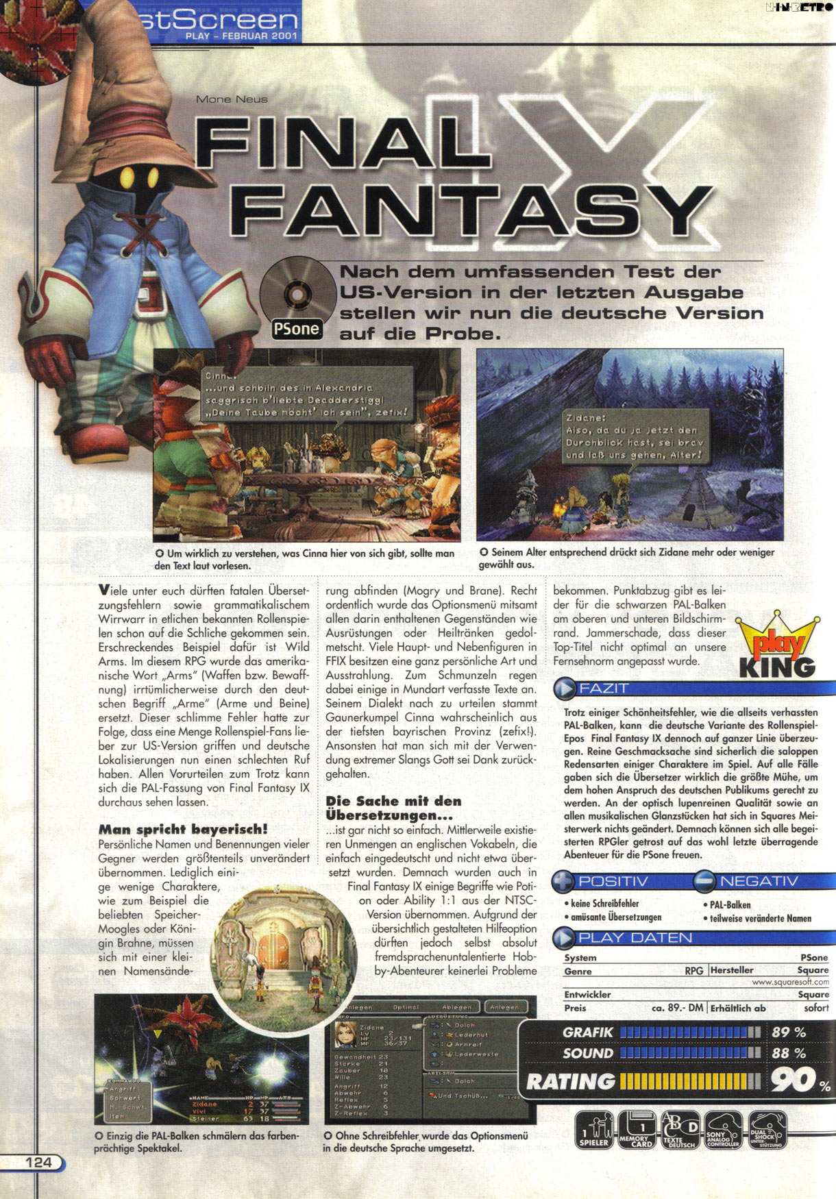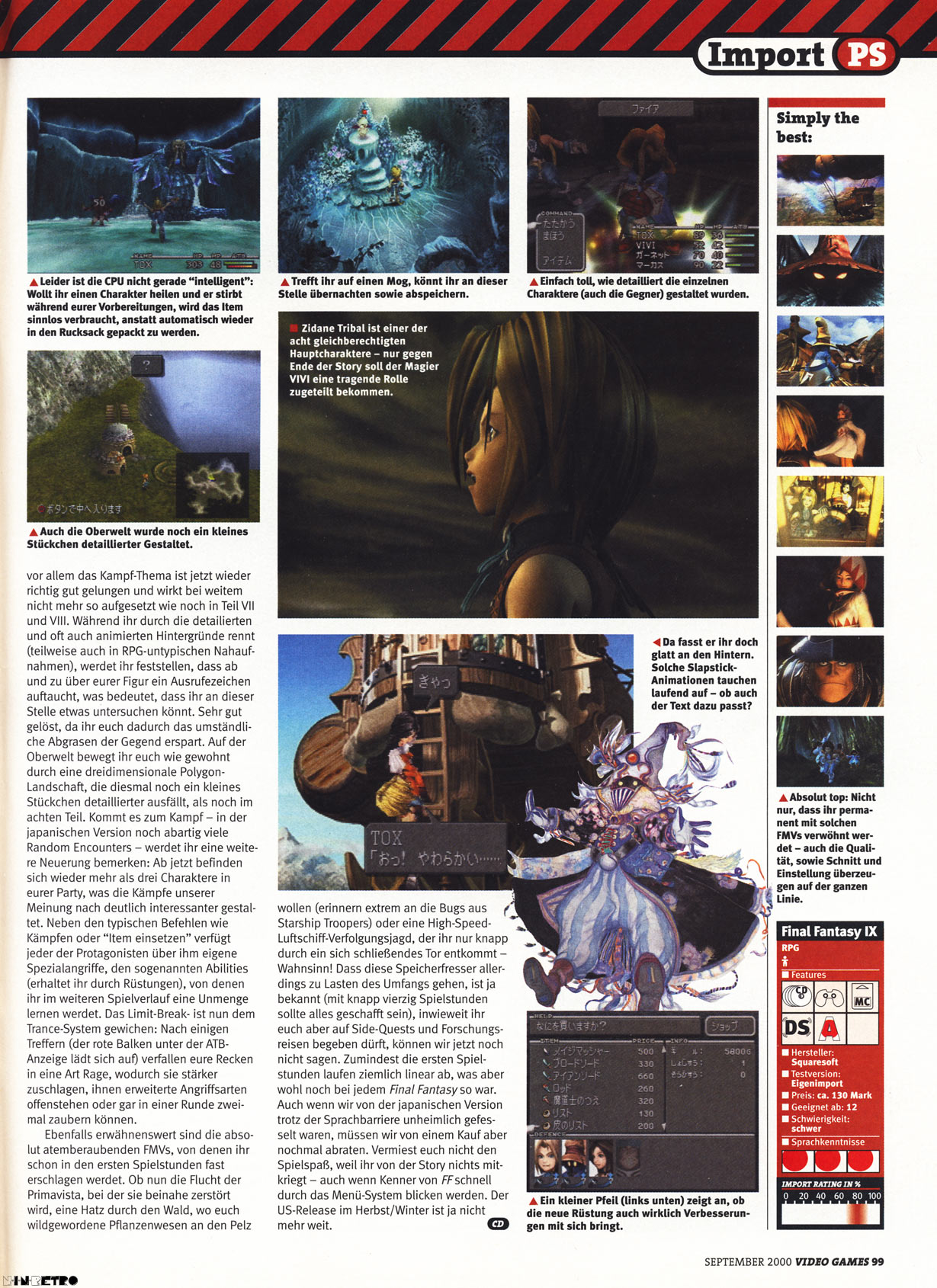Final Fantasy 9 ist für mich ein schwierig zu beurteilender Titel. Ich finde ihn schwächer als Teil 7 und 8. Ich empfand ihn damals als Stilbruch. Ich bin ein großer Fan von Final Fantasy 7 (habe gerade die 20th Anni. Edition für PC gekauft und Spiele es gerade). Mit Teil 9 bin ich damals nicht warm geworden. Die Charaktäre waren mir zu kindlich. Die technische Seite ist zwar sehr stark, dafür kam ich bei der Story nicht so richtig rein. Ich habe ihn dann auch nicht weiter gespielt, was ich dank der YouTube-Videos ein wenig bereue. Eines steht für mich fest, alle Titel die nach Teil 9 kamen gefielen mir einfach nicht mehr. Das Wasserballspiel von Teil 10 war ganz gut, das Kampfsystem von Teil 12 war dank der einstellbaren Vorgaben sehr interessant...aber die eigentlichen Story-Inhalte haben mich nicht mehr vom Hocker gerissen.