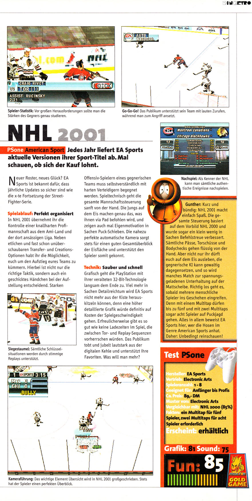 EXPERIENCE THE DRAMA OF WORLD HOCKEY WITH NHL 2001