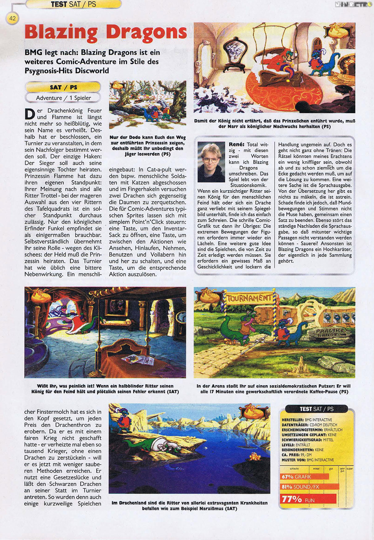 Blazing Dragons ist auch eines der Spiele, die ich gerne gespielt hätte, es aber bislang noch nicht dazu kam. Für ein Point 'n' Click Adventure ungewöhnlich, dass es keine PC-Version gab, sondern lediglich Umsetzungen für PSX und Saturn.