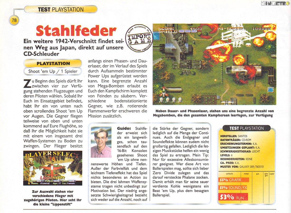 Jedoch hatte ich trotzdem spaß das Spiel durchzuzocken, muss ja auch nicht immer unschaffbar schwer sein. Die 2D Grafik fand' ich gar nicht mal so schlecht, wobei sie sich die 3D Spielereien auch hätten sparen können, aber damals musste sowas ja unbedingt sein.