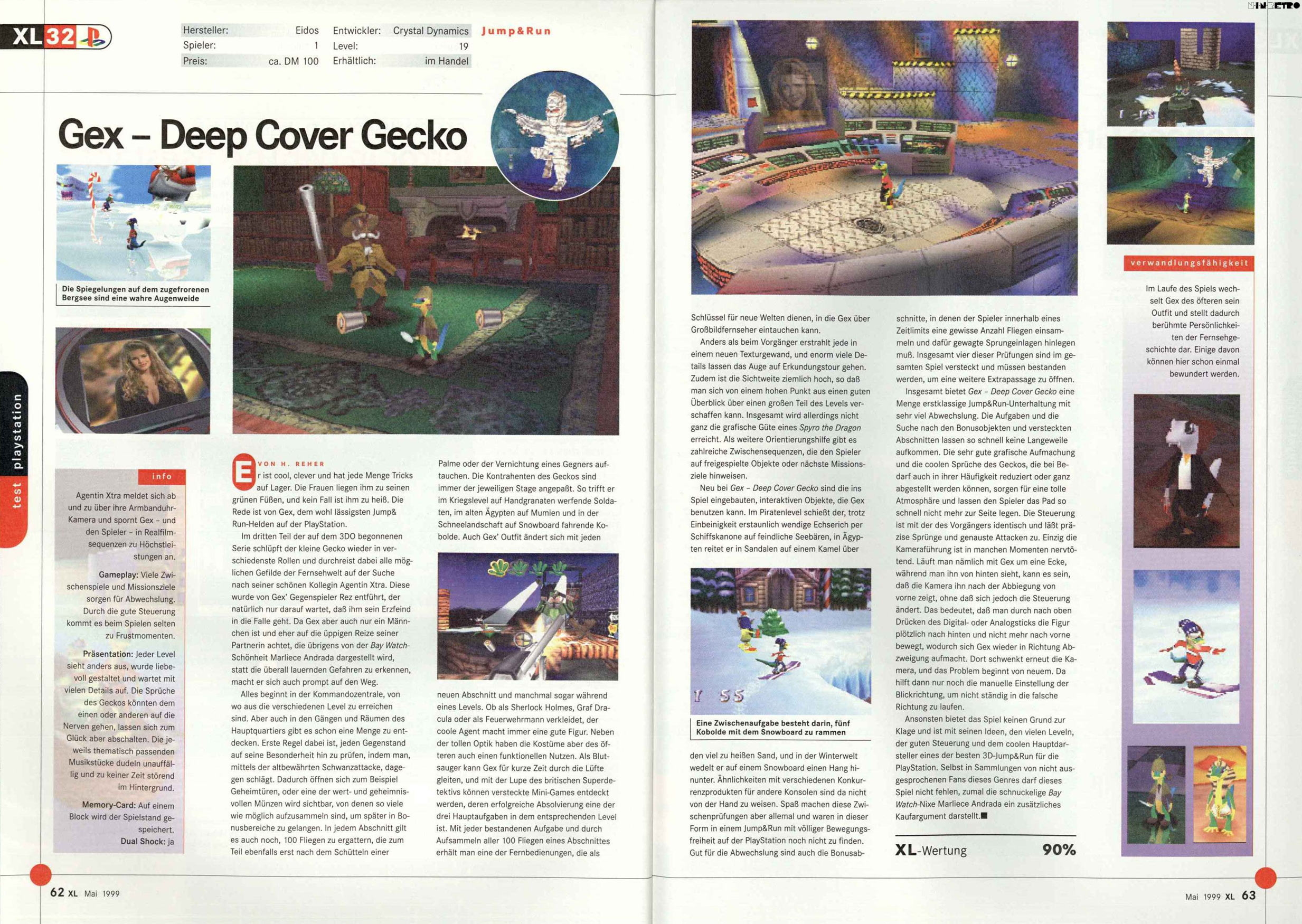 Gex makes a triumphant return in Gex: Deep Cover Gecko, as an international secret agent for hire. Gex's next mission is to find the beautiful Agent Xira, who has been kidnapped by Gex's arch nemesis, Rez.