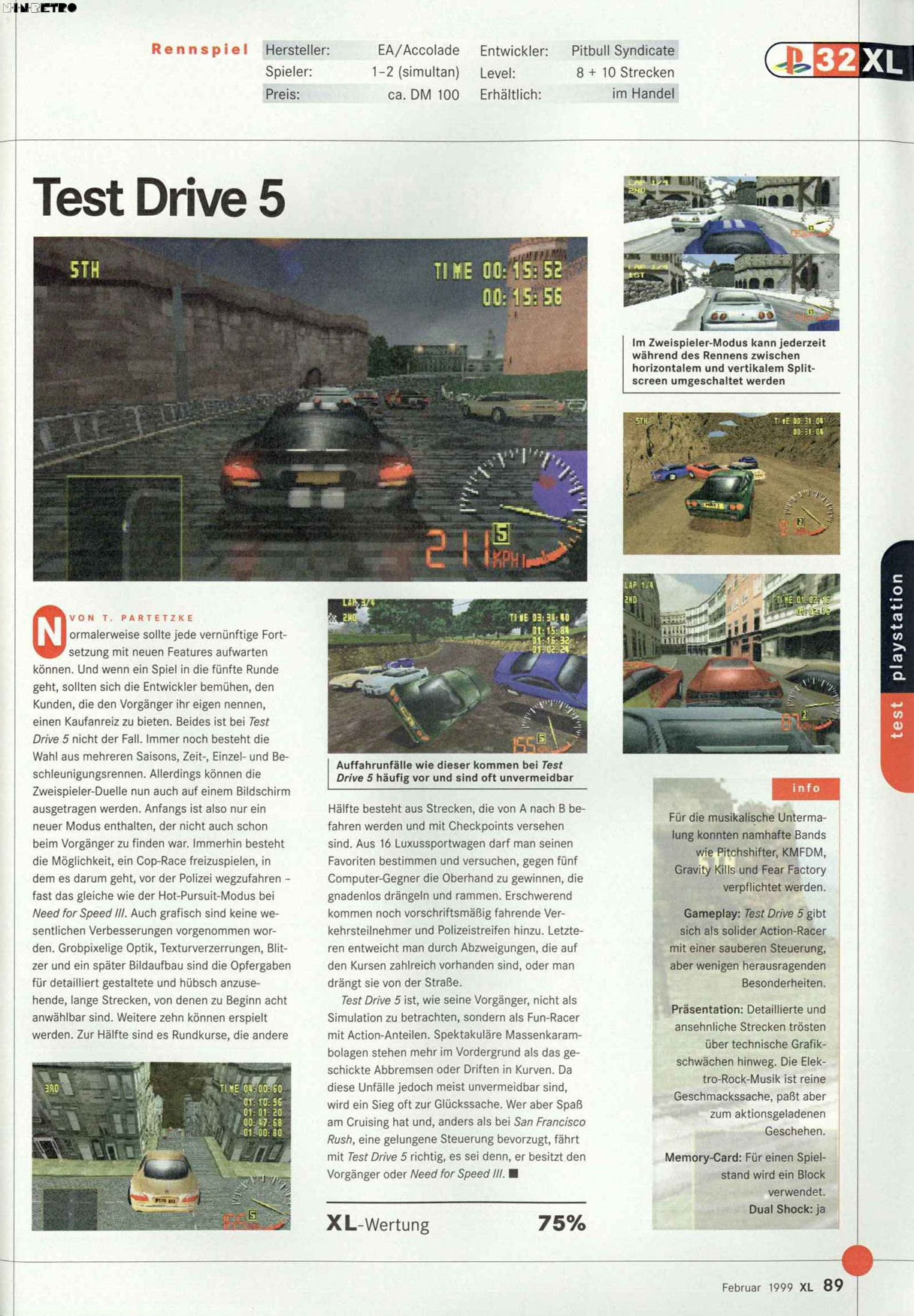 Realistic weather conditions and night driving. Pure street racing mayhem. Discover secret cars and tracks... if you're good enough. High flying action. Head-to-head racing.