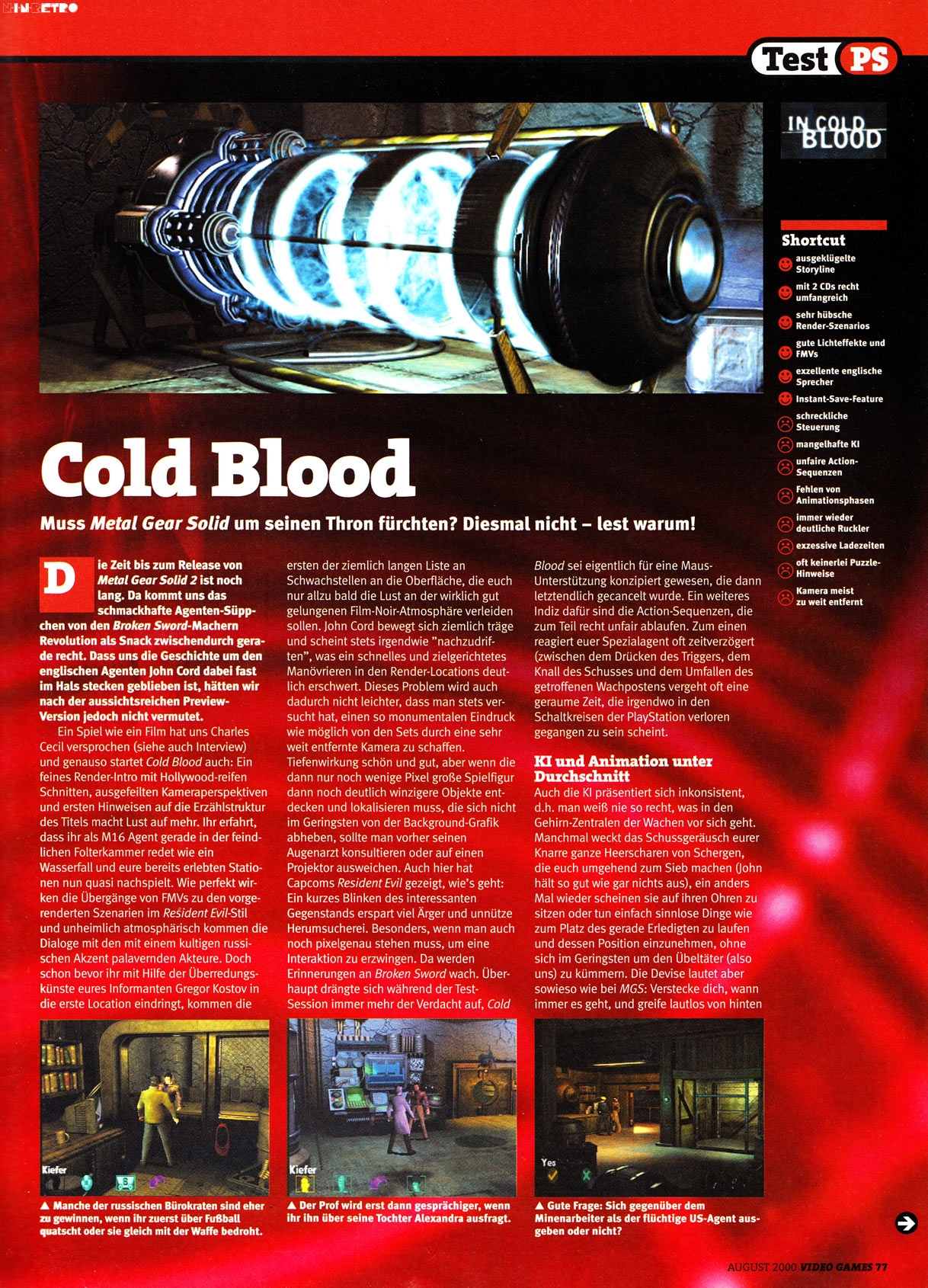 "The most ambitious PlayStation game yet... IN COLD BLOOD pushes what used to be called the Adventure into brave, new, exciting and cinematic territory." - Official PlayStation Magazine