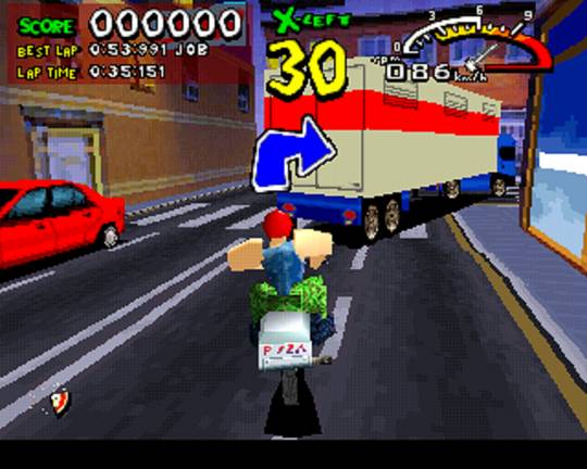 Jumpon your scooter and take up the challenge. Through the busiest streets in the world you've got to avoid trucks, cars, police, obstacles and people in a pizza fuelled dash for glory. Take the challenge and race your way across Paris, London, New York and the true home of Pizza - Italy!