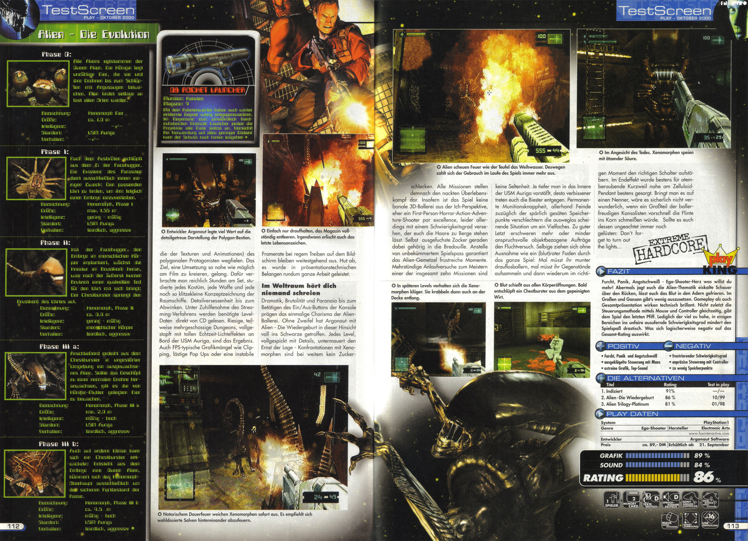 Von seinem unverschämten Schwierigkeitsgrad mal abgesehen halte ich Alien Resurrection immer noch für einen der großartigsten Shooter der ausklingenden PSX-Ära. Stellenweise hatte das Ganze schon fast etwas von Half-Life mit Alien-Lizenz. Und es wurde bei uns seltsamerweise ohne weitere Einschnitte ab 16 freigegeben, was angesichts der extrem blutigen Action samt menschlicher Gegner zu der Zeit noch recht verwunderlich war.