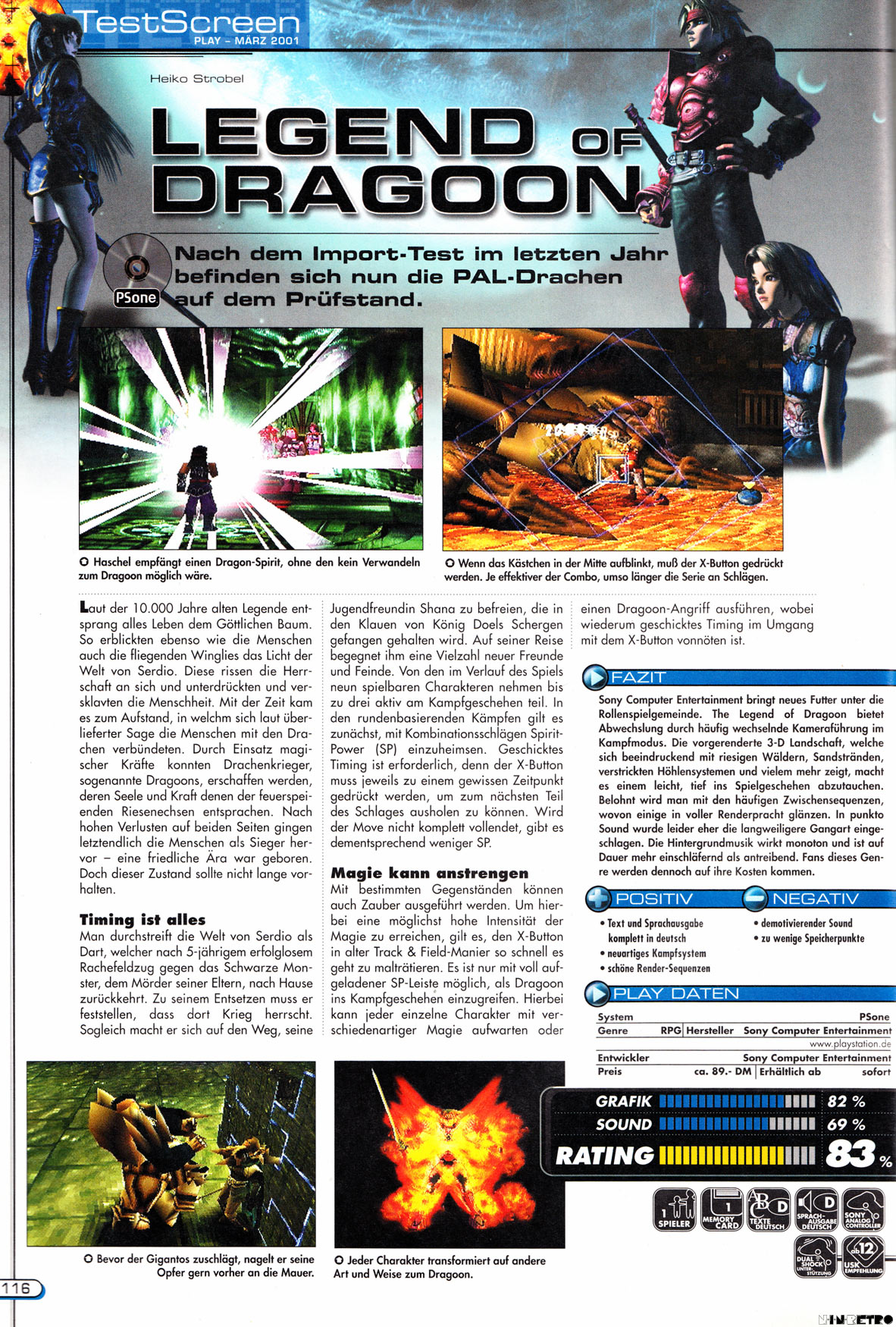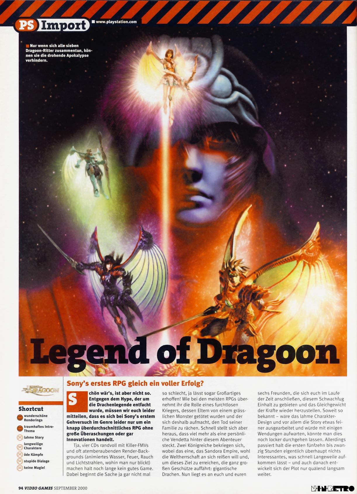 Take Dart, a brave young hero. Add an eager band of fellow adventurers, a mysterious evil force, fierce monsters, mythical folklore and amazing battle sequences; play for 80 hours across 4 discs and get the epic RPG that you've been waiting for - The Legend of Dragoon.