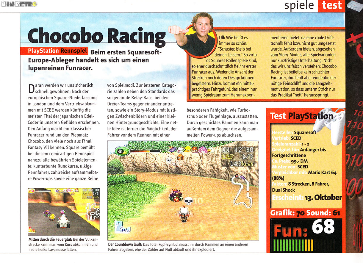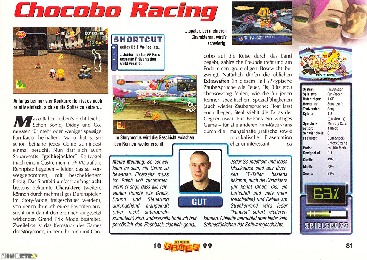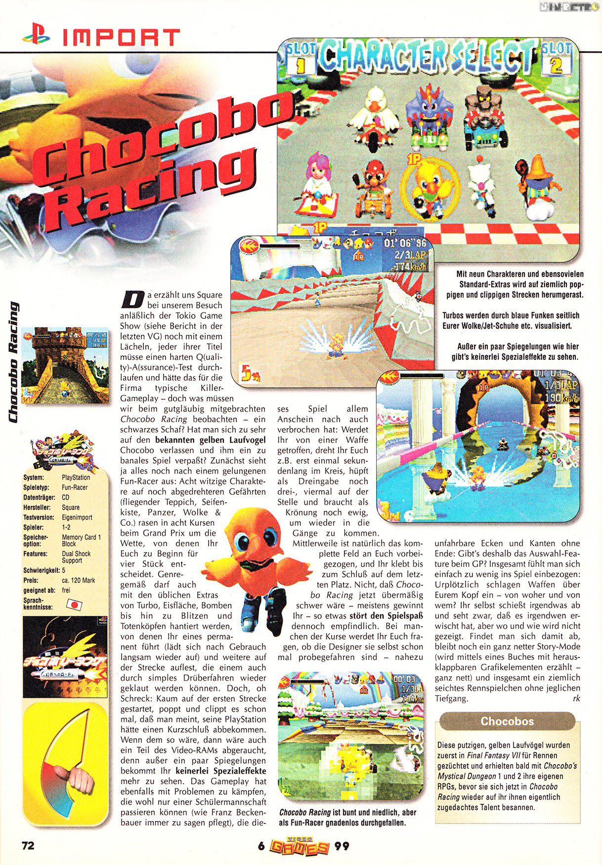 Chocobo and many ohter characters from the FINAL FANTASY world star in this high-speed racing game filled with magical spells, special abilities, and challenging courses!