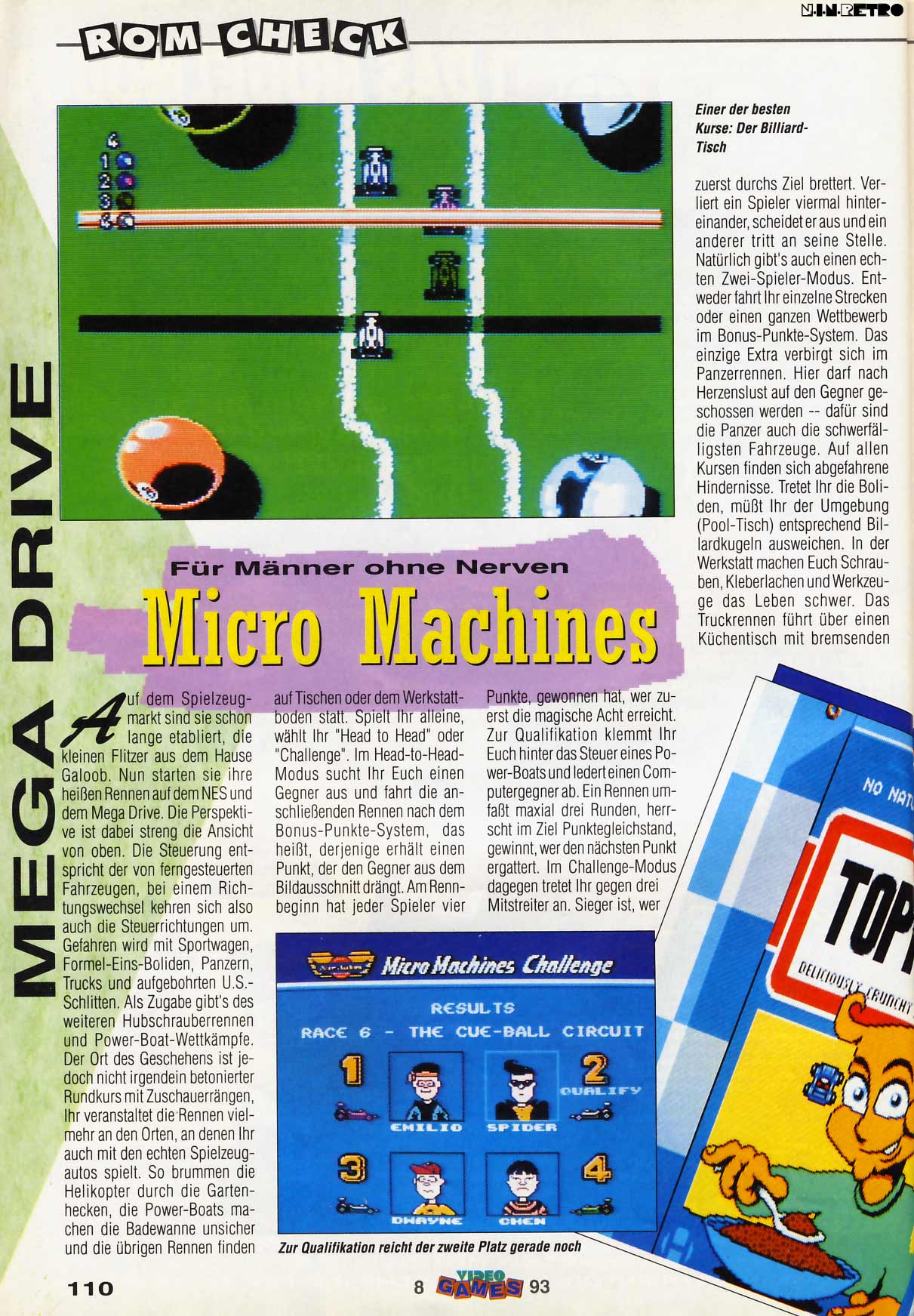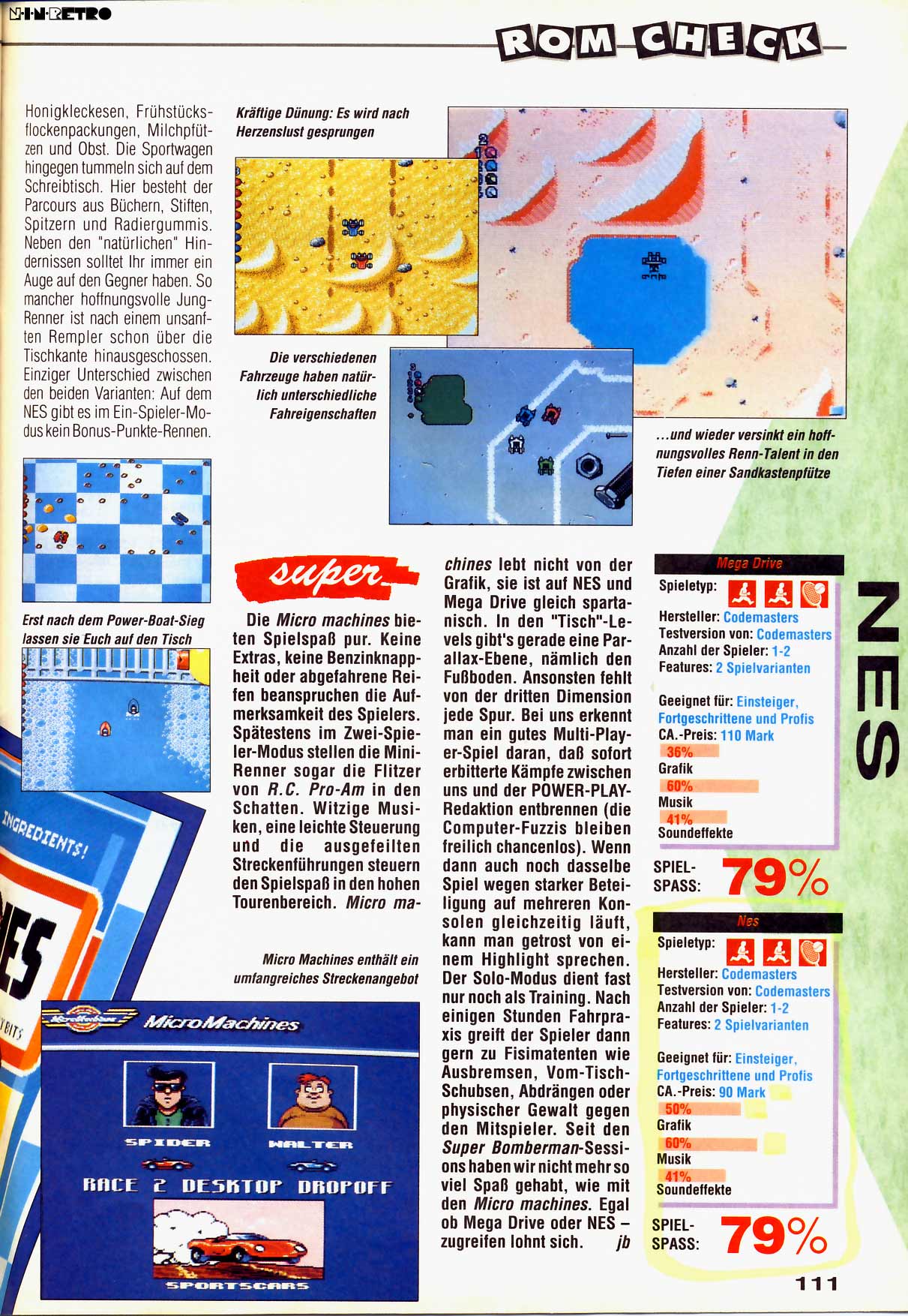 We believe this is the most competitive racing game yet produced. AMAZING PLAYABILITY!!! - features a very competitive two player option. 27 cunningly devised circuits - under bridges, thru oil patches - power sliding arount corners - trying to beat the other drivers and become the Micro Machines Champion!