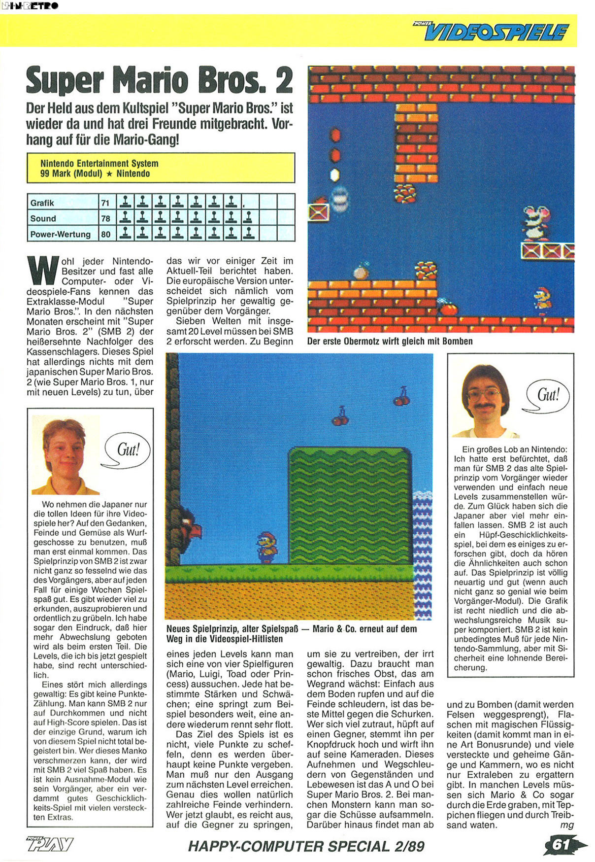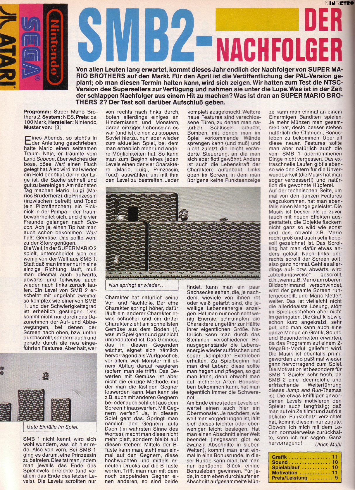 Das Spiel ist damals komplett an mir vorbei gegangen. Ich habe es das erste Mal mit den Super Mario Allstars gesehen. Ich finde es nicht so gut wie SMB und SMB3, weil es träge wirkt. ABER, die Wahl zwischen 4 verschiedenen Charakteren und die durchdachten Boss-Gegener waren sehr gelungen.