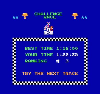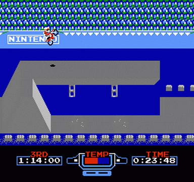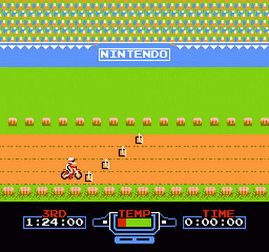 This thrilling Nintendo programmable game lets you vary the obstacles, change the sequence of events, and increase the racing challenge time and time again! You'll start out in a Nintendo designed preliminary race, and move through a series of increasingly difficult challenge races! You'll face crazy curves, hairpin turns, daredevil jumps, and some very fierce motorcross competition, as you race your bike towards the checkered flag. This thrilling test of driving strategy and skill will keep you riveted to the screen for hours!