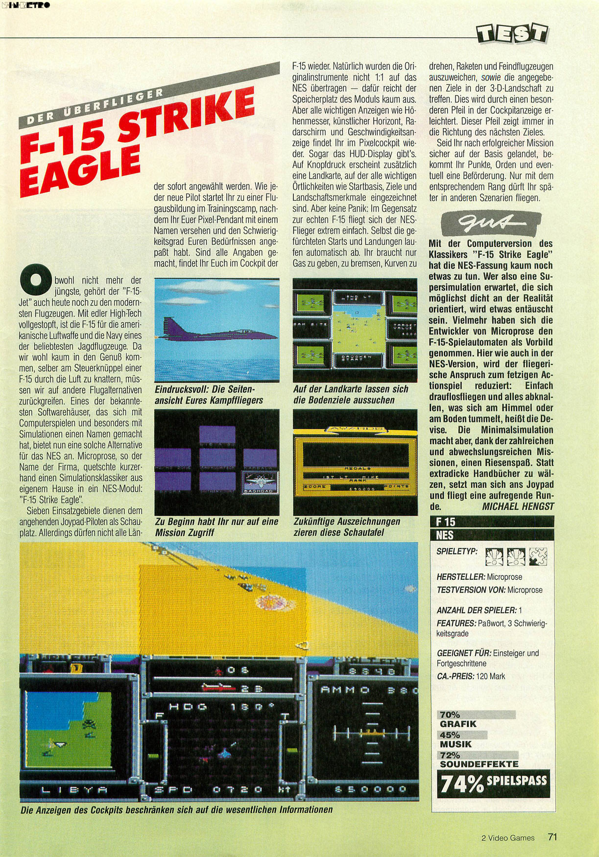 F-15 Strike Eagle is your chance to pilot the powerful jet on dangerous missions in the Persian Gulf. Try to destroy chemical warfare plants and lead an assault against the enemy. Lots of thrilling 3-D graphic adventures make the game constantly challenging, always new.
