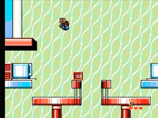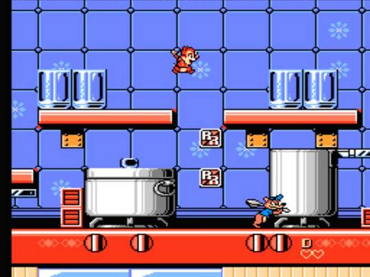 Join Chip and Dale and the rest of the Rangers in their wacky new adventure. Help them explore the dangerous levels of the downtown restaurant and meet the exploding personality of Water Rabbit. Aid them on their escape through the freezing floors of the giant refrigerator. Search the ghostly walls of the haunted warehouse and find the final clue to unravel the secret headquarters of Fat Cat.