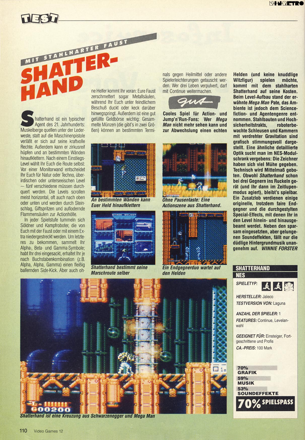 That's the guts of SHATTERHAND, the game that redifines hant-to-hand combat in the 21st Century... along with all the standards for single-player action games for the Nintendo Entertainment System.