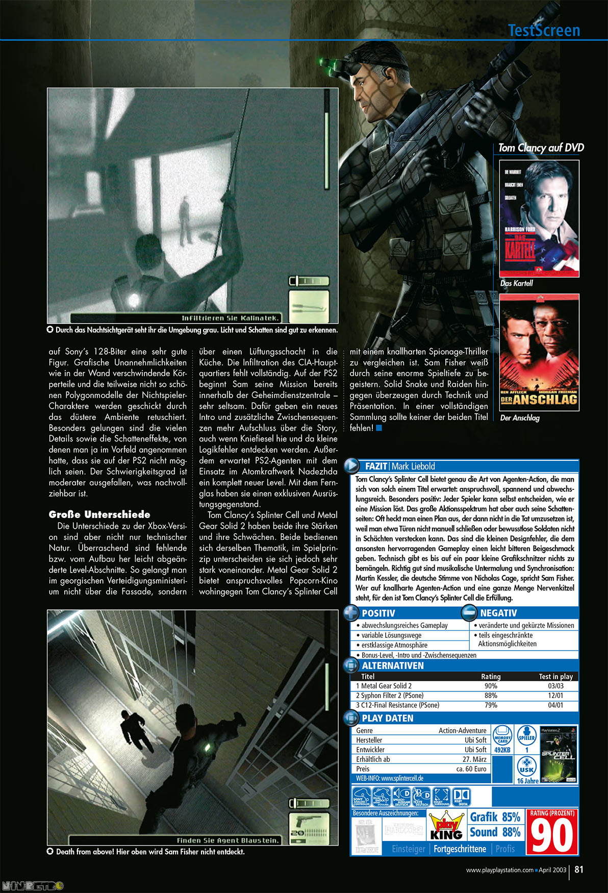 Das Spiel was die erste XBOX damals groß gemacht hat und ich mich an die Ports bis Teil 3 zur PS2,XBOX und Gamecube Ära noch sehr gut erinner,daß die PS2 Version immer Texturmäßig leider schwächer war.Auch die Reihe hab ich damals lieber gespielt als Metal Gear,wobei Splinter Cell Gameplaytechnisch besser war als MGS 1 und 2 aber Storytechnisch Käse.Ein wenig sozusagen der Glaubenskrieg wie die Westlichen Entwickler Stealth Game machen und wie Hideo-Freaking-Kojima die Games macht.Hab aber sonst die Reihe sehr gern auf dem PC gespielt und hat nmir doch echt Laune gemacht