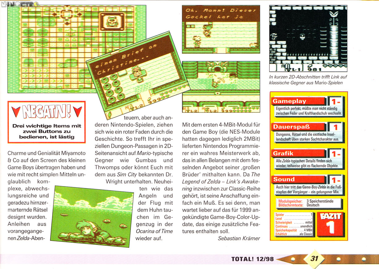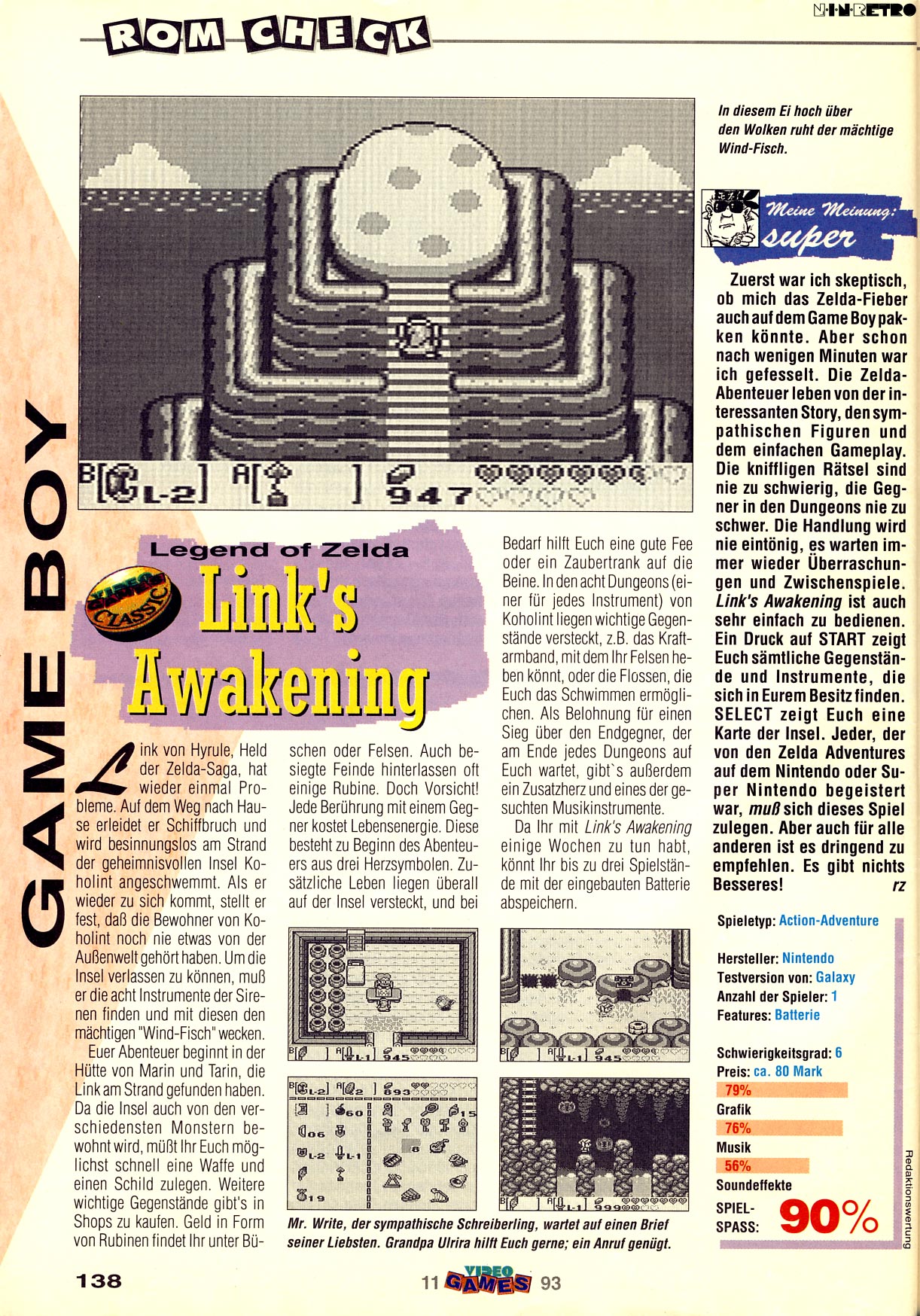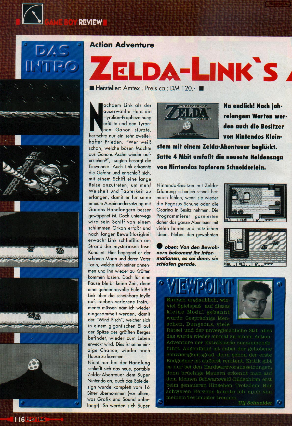 Mein erstes Zelda Spiel und bis heute eines meiner liebsten Zeldatitel! Wahnisnn was alles in dem kleinen Modul steckt! Ich mag besonders mag ich den skurillen Humor, die Atmosphäre sowie den Soundtrack, der bis heute einzigartig ist. In den anderen Belangen haben die spirituellen Nachfolger OoA/OoS Link's Awakening noch übertroffen. An die magischen Momente von Link's Awakening denke ich bis heute gerne zurück, es war auch ein sehr wegweisendes Zelda und die Enwtickler konnten sich richtig austauben, das Spiel zu entwickeln war für viele damals eine Herzensangelegenheit, da Nintendo das Spiel zuerst nicht auf dem Game Boy durchsetzen wollte, weshalb das Team viel in der Freizeit daran gewerkelt hat (meine ich mich zu erinnern).