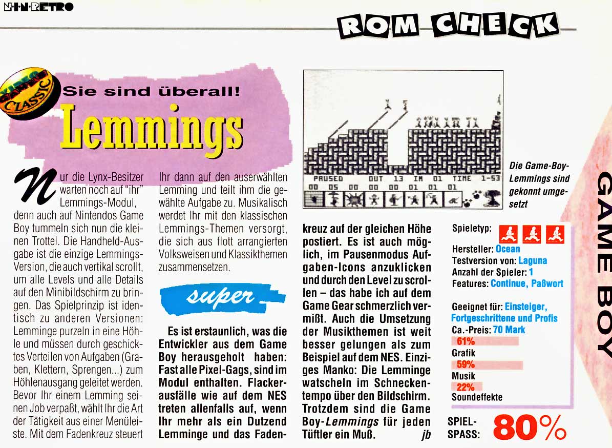 Blitzschnelle Entscheidungen und rasiermesserscharfe Reaktionen gehören auch zu Deinem Arsenal... aber vergiß nicht, ein Blocker, ein rauher Minenarbeiter oder sogar ein falsch eingesetzter Bauarbeiter können das bittere Ende für jeden Lemming auf dem Bildschirm bedeuten!