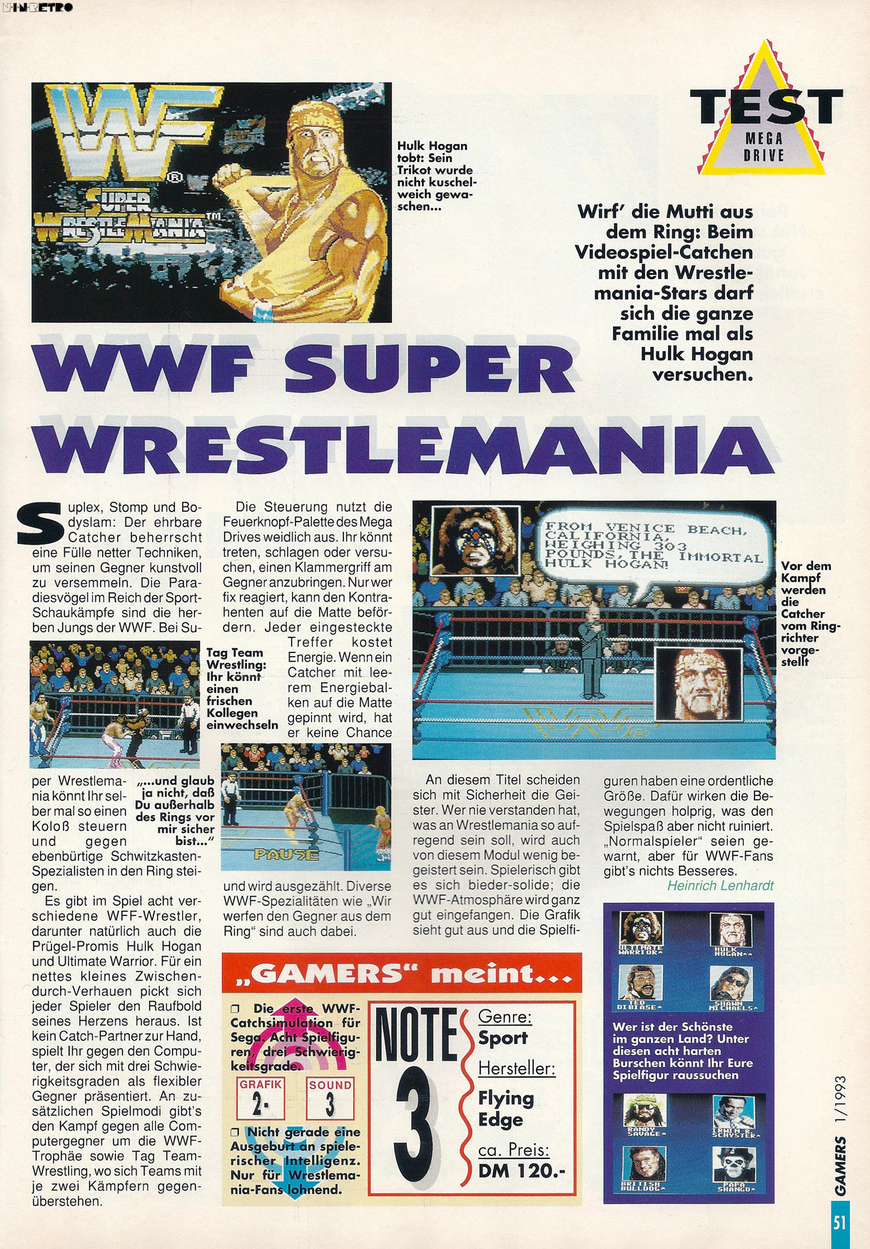 Papa Shango, British Bulldog und der Ultimate Warrior waren tolle exklusiv Wrestler. Besonders aber Shawn Michaels war für mich damals der Grund sehr froh über die Mega Drive Version zu sein.