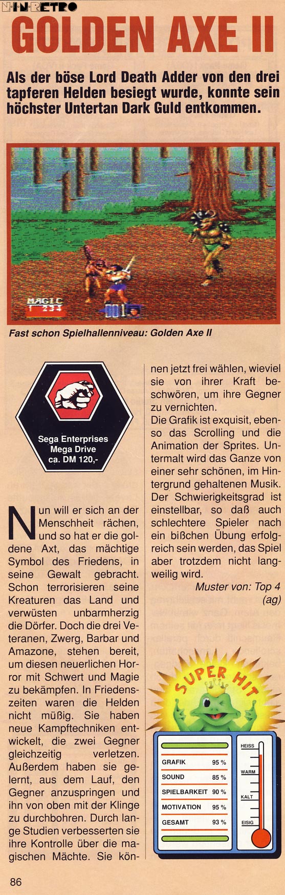 Das Problem mit dem Controller lässt sich nicht beheben, da das Spiel den Mode-Knopf von vornherein als eine Richtungstaste wahrnimmt und nicht als Umschalter oder Ähnliches. In meinem Fundus ist Golden Axe II diesbezüglich die Ausnahme. Noch was, eigentlich dachte ich die Ironie meiner Aussage, von wegen "geil", wäre offensichtlich, denn natürlich ist es alles andere als toll, seine Spielfigur ohne Steuerkreuz bewegen zu müssen.