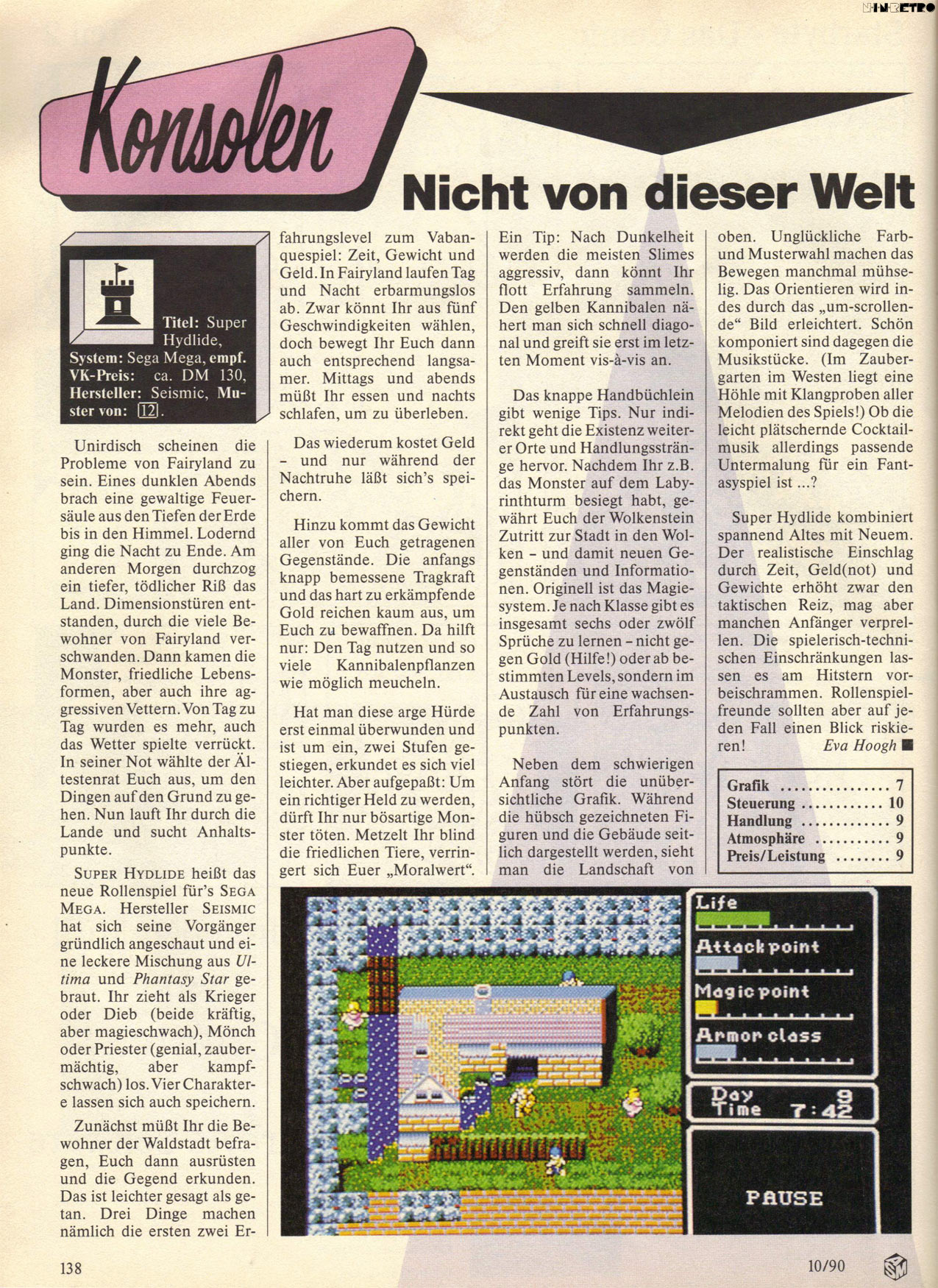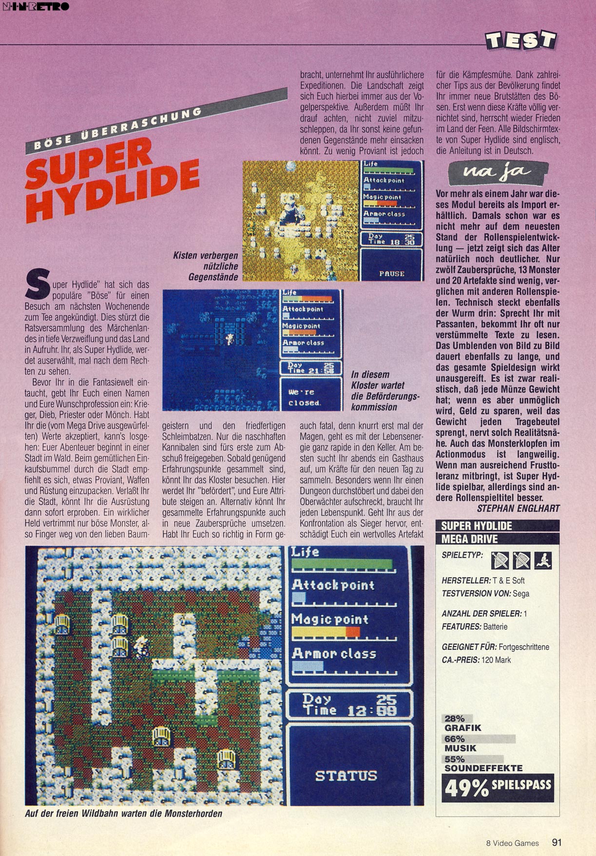 Gehe mit Super Hydlide in das Reich der Mythen und Legenden. Die Ratsversammlung des Märchenlandes fürchtete, daß der selbe Böse wie in den Legenden wieder da war. Ein weises, altes Orakel war unter ihnen. Er sagte das zweite Kommen des Bösen voraus. Er sprach auch von einem jungen Mann, der das Märchenland aus seiner schlimmsten Krise befreien konnte. Ein junger Mann wurde ausgesucht, um den Grund und die Quelle des Bösen ausfindig zu machen. Als die Leute sich versammelten, um ihm viel Glück zu wünschen, konnten sie nicht anders, als sich zu überlegen, ob sie den richtigen gewählt hatten. Welches Schicksal erwartet unseren Helden und dem Märchenland? Nur Du kannst diese Fragen beantworten.