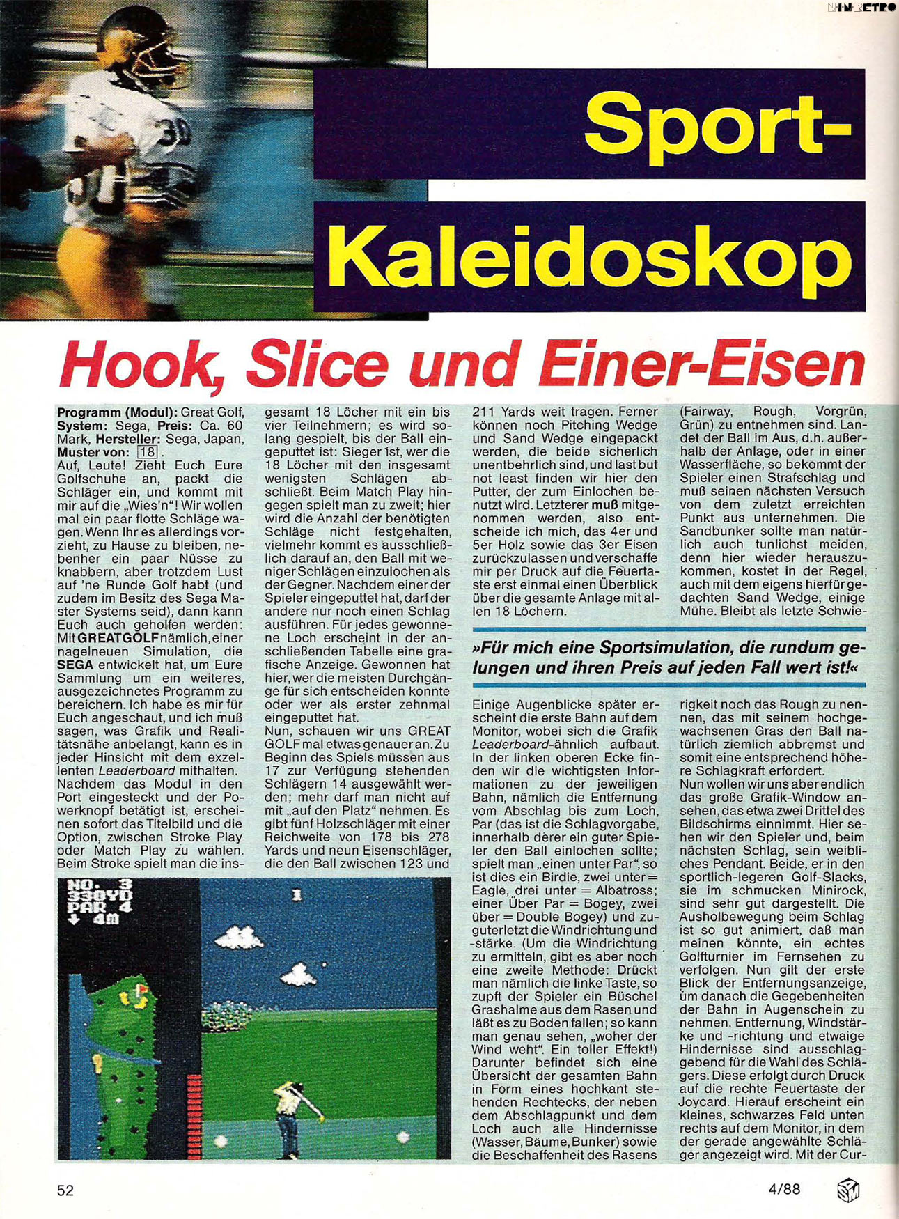 Ziemlich unfaires Golfspiel, hier braucht man wirklich "Nerven aus Stahl", um bis zum letzten Loch durchzuhalten. Da ist mir das erste NES-Golf noch wesentlich lieber !!!