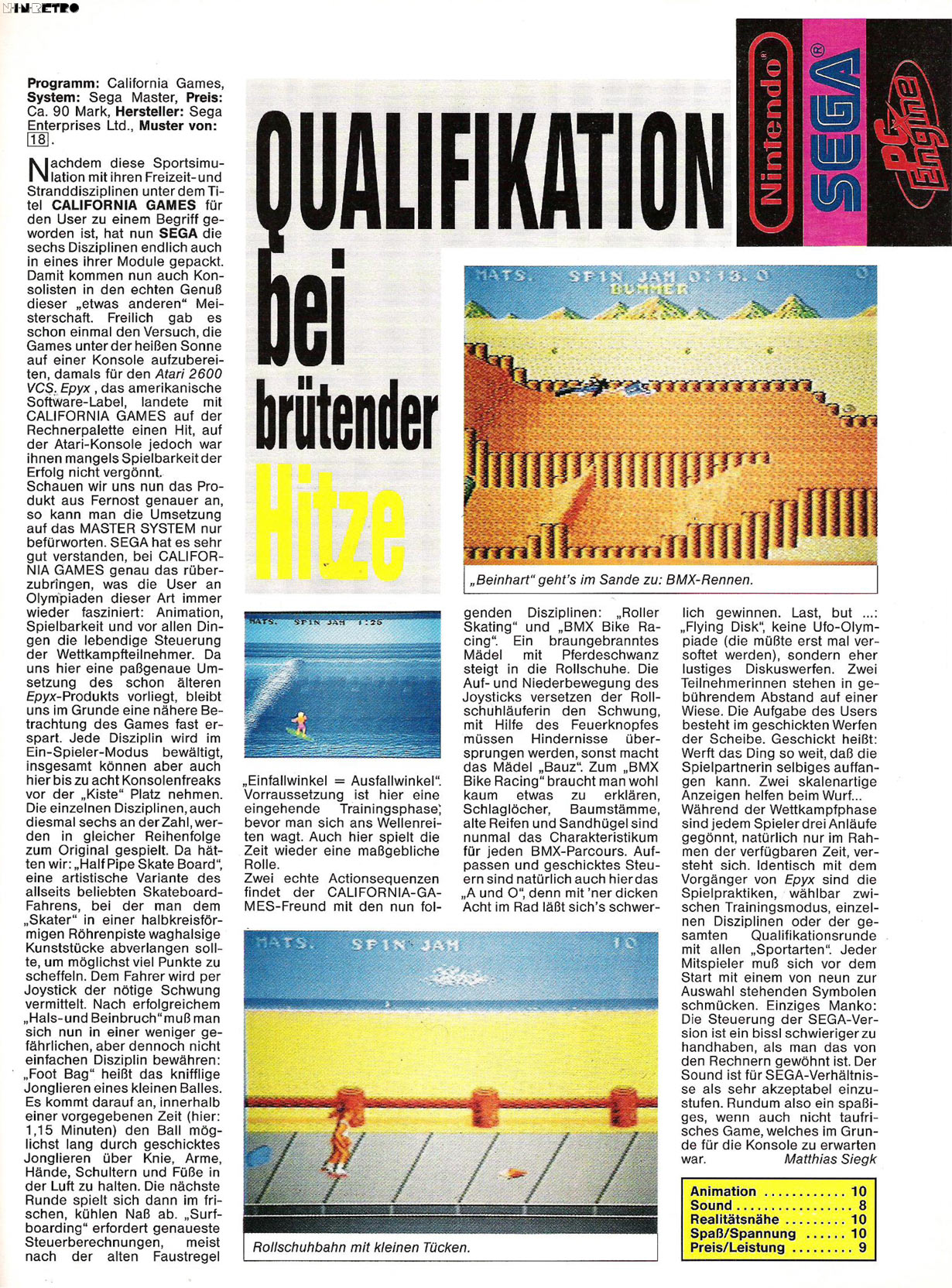 Ein tolles Spiel. Es ist super umgesetzt und hat einen fordernden angenehmen Schwierigkeitsgrad. Ich fand das Mountainbiking und das Hacky Sack-Spiel immer spaßig. Der Titel gehört in jede gute Master System-Sammlung.