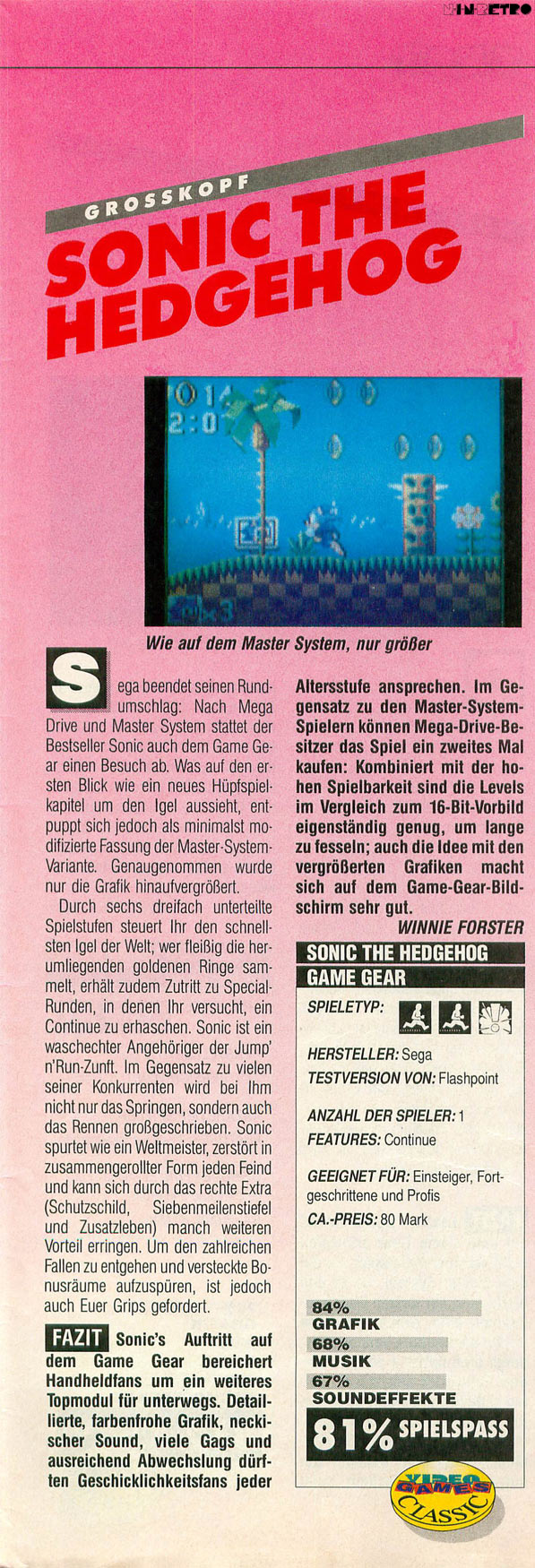 | «« Sonic Spinball «« | »» Sonic the Hedgehog 2 »» |