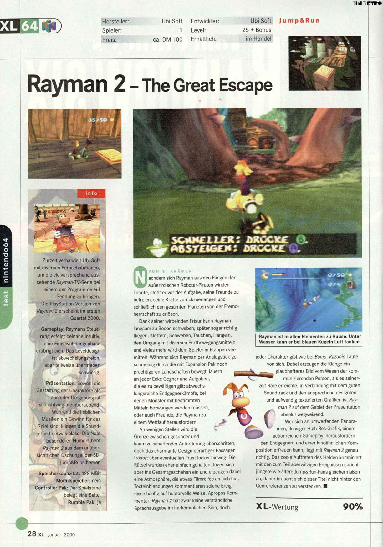 Btw. (und um auf das eigentliche Thema, nämlich Rayman 2, wieder zurück zu kommen) wenn ich mich nicht irre, dann wurde Teil 2 auch als Rayman DS und Rayman 3D für DS bzw. 3DS portiert und beide Umsetzungen sind zur Zeit für relativ kleines Geld erhältlich. Wieso aber Ubisoft für den (West-)Launch des DS und 3DS jeweils das gleiche Spiel umgesetzt hat und z.B. beim 3DS nicht Rayman 3 gekommen hat, wird wohl ihr Geheimnis bleiben. Die DS-Portierung soll wohl eine Umsetzung der N64-Version sein und die für 3DS eine Umsetzung der DC-Fassung... so steht es zumindest in der engl. Wiki geschrieben.