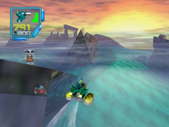 Saublöde Idee, die Mario-64-Kamera in einem Shooter zu verwenden. Eine einfache Verfolgerperspektive ist für dieses Genre wesentlich besser geeignet, wie etwa in MDK. Auch die Kombination aus kindlicher Aufmachung und hoher Brutalität passt in meinen Augen überhaupt nicht zusammen. Das weinende Kind, das als Einziges das Massaker in seinem Dorf überlebt hat ist geradezu verstörend.