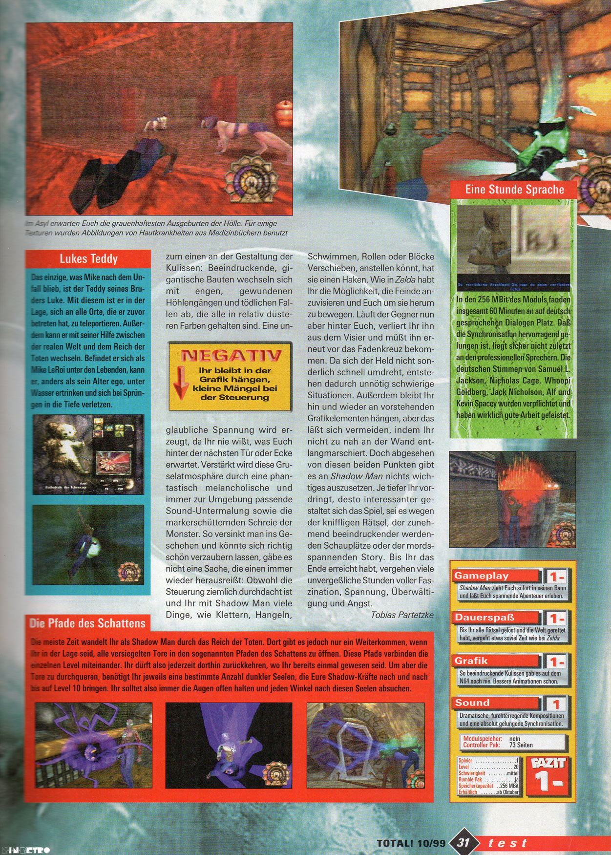 Die N64-Version ist im Vergleich zur PC- und Dreamcast-Fassung in der Tat recht schwach. Aber immer noch besser, als die grobschlächtige Playstation-Umsetzung. Obwohl, da die Nintendo-Version teils stark gekürzte Levels hat, fällt das Backtracking nicht ganz so schwer ins Gewicht. Kann man also auch positiv sehen .