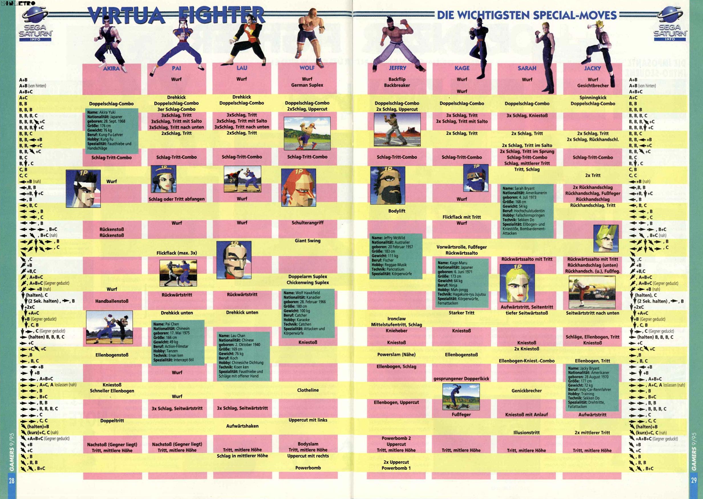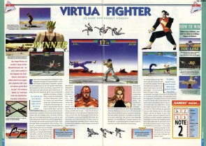 Er ist wieder da: Der Actionhit, der die Spielhallen erbeben ließ! Sega hat an alles gedacht. Mehr als 700 verschiedene Kampfbewegungen und Spezialangriffe wollen geübt sein, und alle neun starken Typen fetzen in feinster Polygongraphik durchs Bild. Die bahnbrechende 3-D-Graphik läßt Actionmuffeln sowieso keine Chance. Die Landschaft ist zum Greifen echt. Ihre Gegner auch. Virtua Fighter, der schnellste, aufregendste Kampfsport aller Zeiten wartet - nicht lesen, SPIELEN! Für 1 bis 2 Spieler.