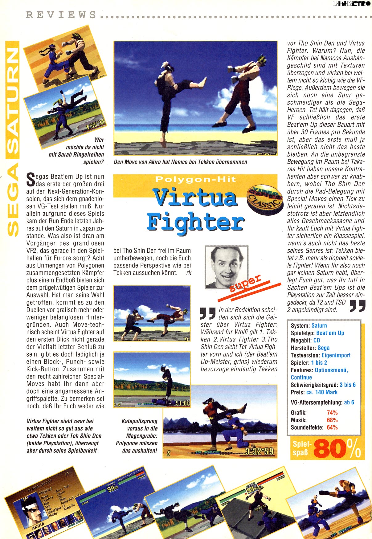 Das Einzige, was schon in Ansätzen erkennbar war, ist die Systematik der Unterscheidung bei Angriffen zwischen High/Mid/Low, womit ein wesentlicher Grundstein für 3D Fighter gelegt wurde.