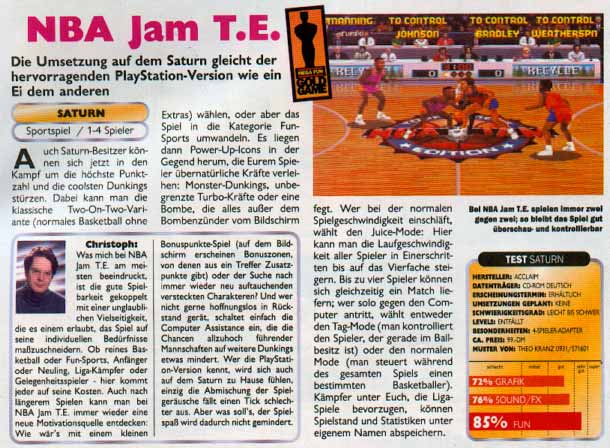 Ein technisch topaktuelles System erfordert selbstverständlich das technisch topaktuelle NBA JAM TE. Und hier ist es: Spielerskalierung in Arcade-Qualität! Aktualisierte Teams! Die Gesichter der bekannten Basketballstars! Sonst noch was? Wir bieten Dir völlig neue versteckte Spielfiguren! Zu Deinen Superwürfen gibt's außerdem dröhnende Musik in Stereo und authentische Arcade-Soundeffekte! Und die absolute Krönung: individuelle Lautsprecheransagen! NBA JAM TE - Spiel den Korb heiß!